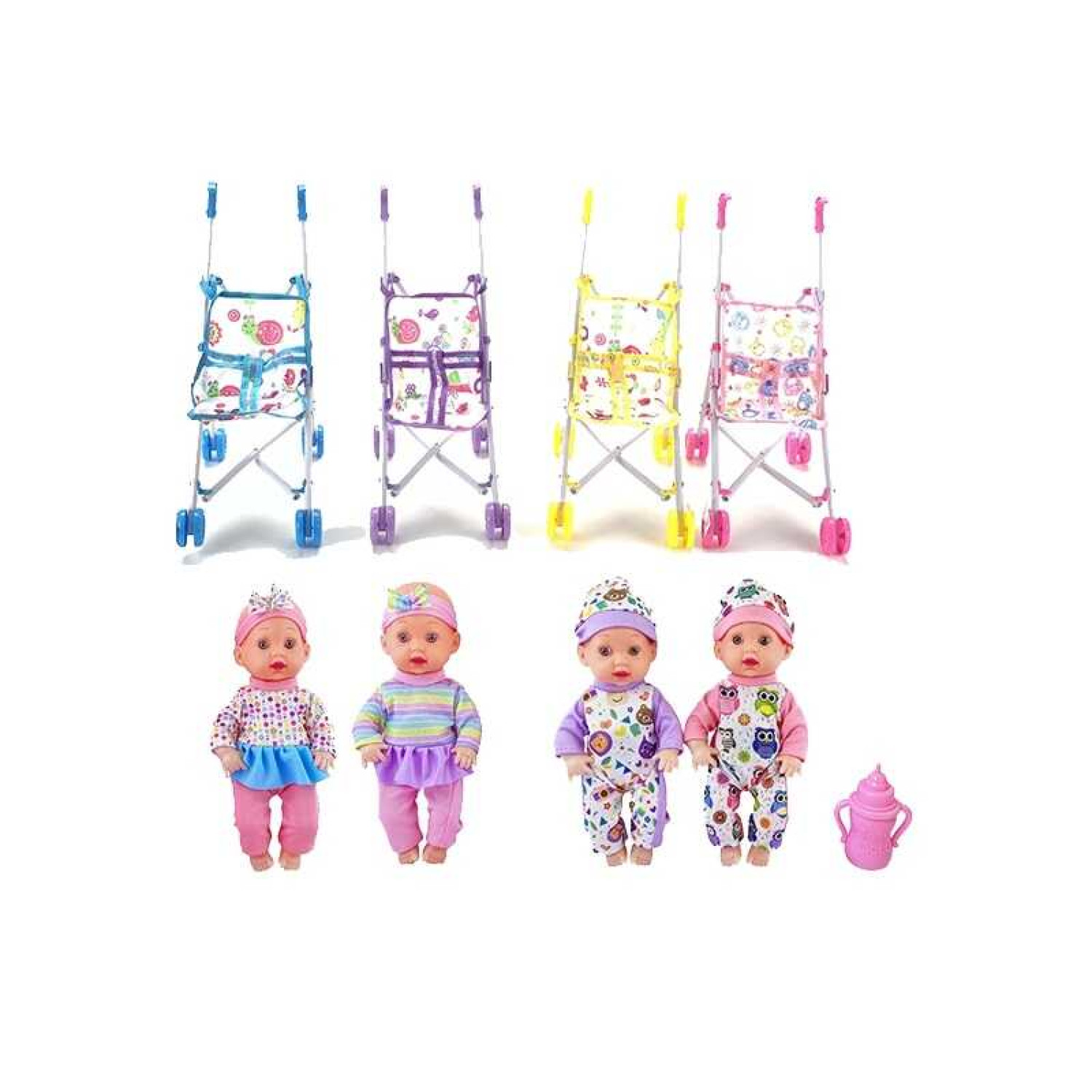 Пупс 4 види, складний візок, знімний одяг, пляшечка, висота 27 см, МІКС ВИДІВ /96-2/