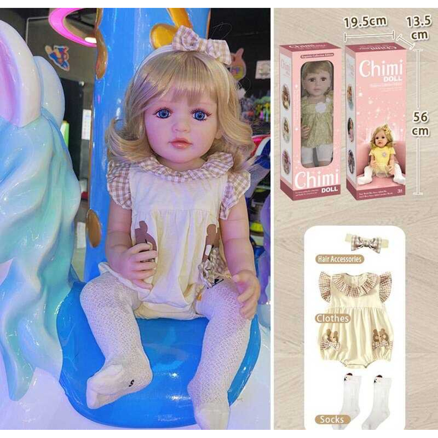 Лялька реборн "Chimi Doll" висотою 56 см. Іграшка максимально реалістична з деталізованими рисами обличчя, виразними очима, румяними щічками. Схожа на справжню дитину. Має анатомічно правильні пропорції тіла. Виконана зі щільної гуми, приємна на дотик. Ручки та ніжки рухливі. Волосся виглядає як натуральне і являє собою якісну імпортну високотемпературну шовкову перуку. Ляльку можна купати в воді та робити зачіски. В комплекті: пупс та знімний одяг. Матеріал щільна гума є гіпоалергенним та безпечним для дітей.
