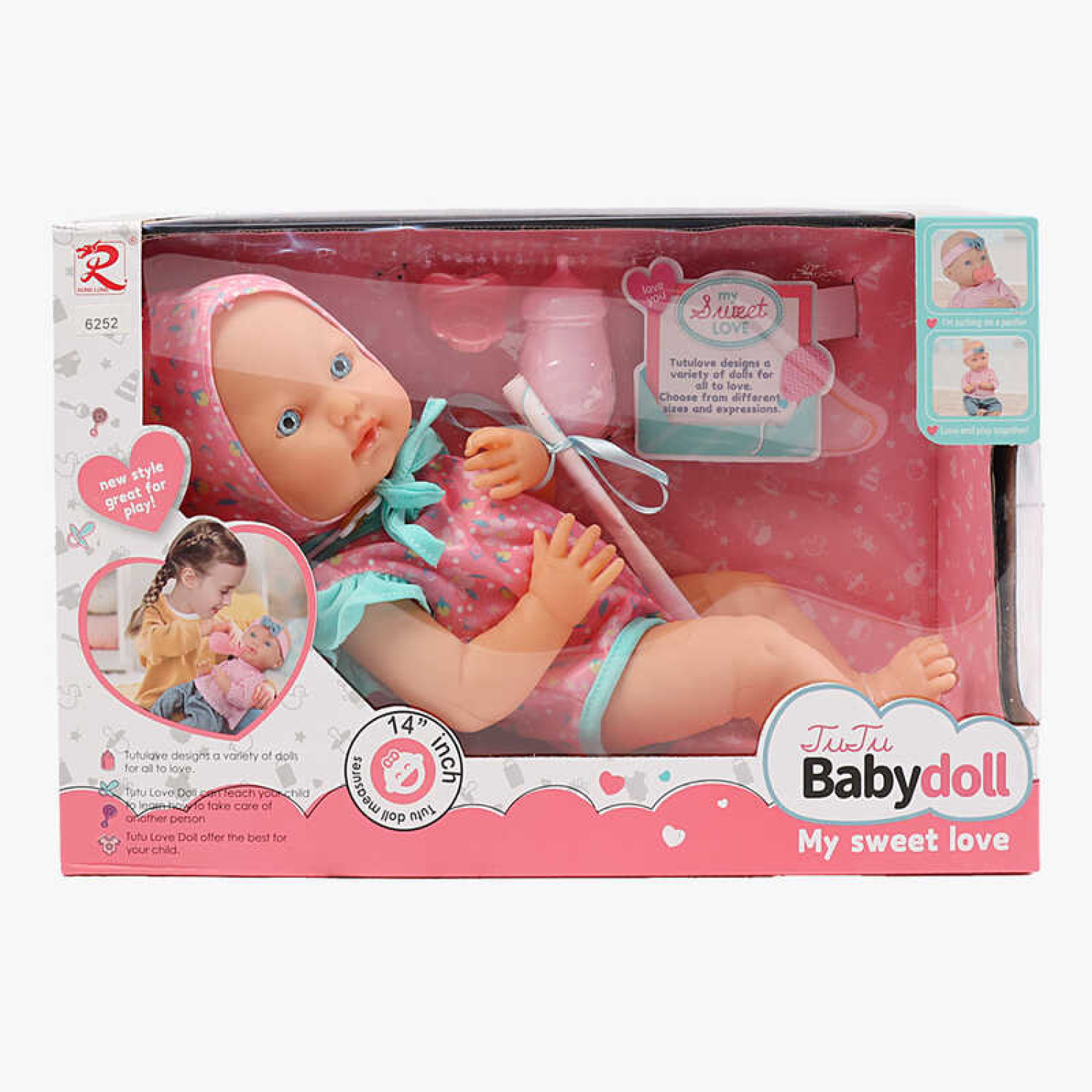 Пупс гумовий, висота 33 см, рухливі кінцівки та голова, знімний одяг, пустушка, пляшечка, в кор. /24/