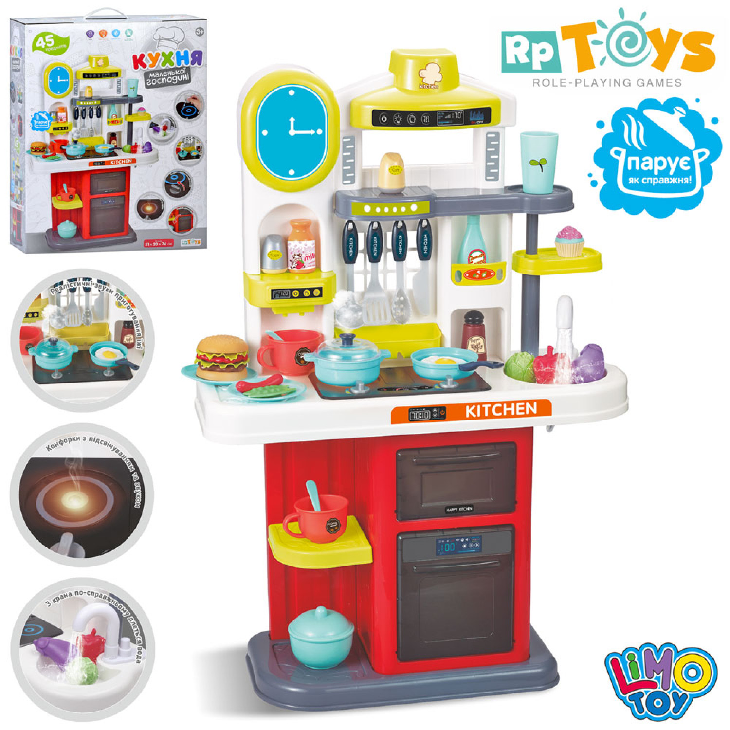 Кухня 51-20-в76см, плита, пара, звук,світло, духовка, мийка-ллється вода(механ), посуд,продукти, 45пр, на бат-ці, в кор-ці, 42-53-15,5см /6/