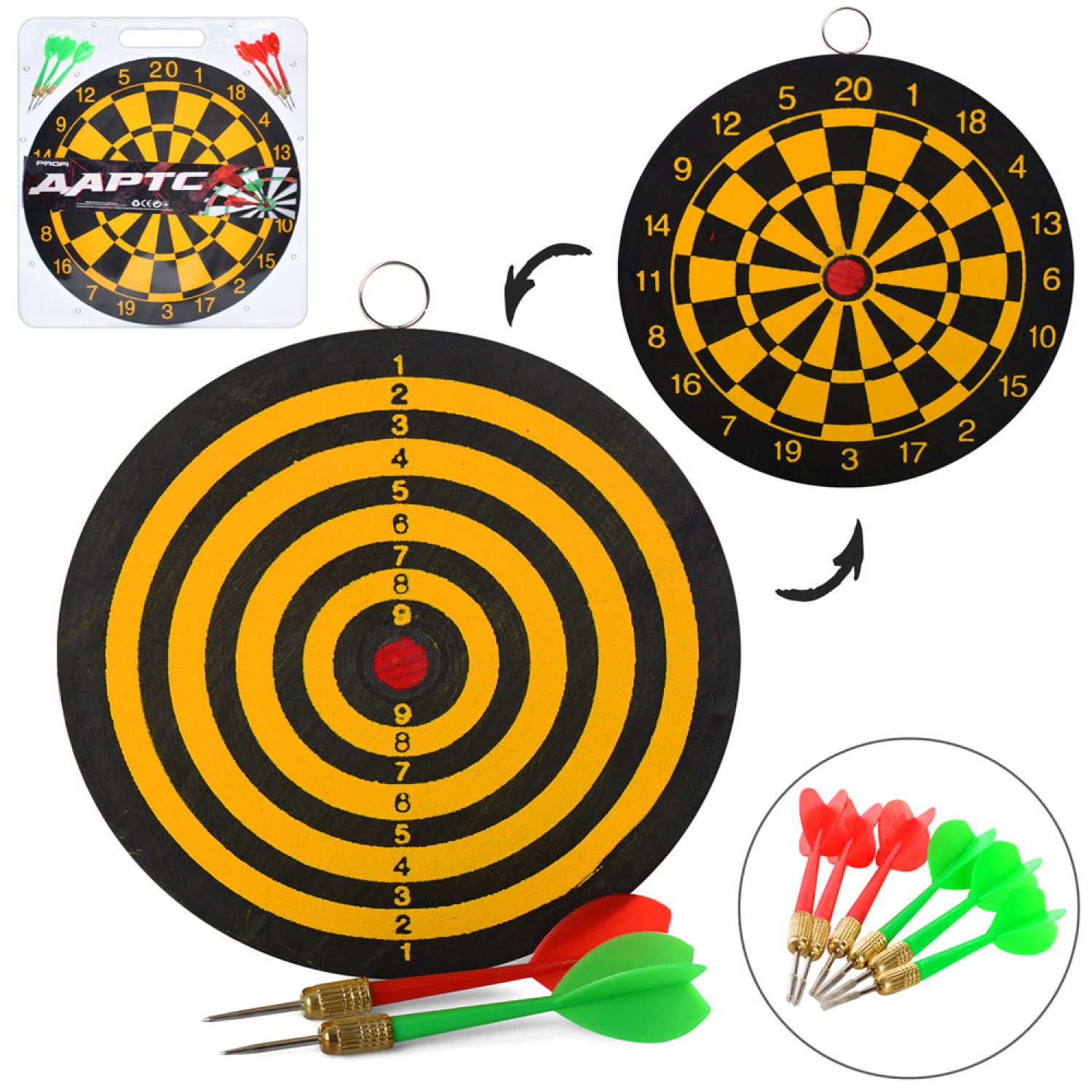 Дартс 15 дюймів, дротики з голкою 6шт, двосторонній, в слюді, 39-43-2см /24/