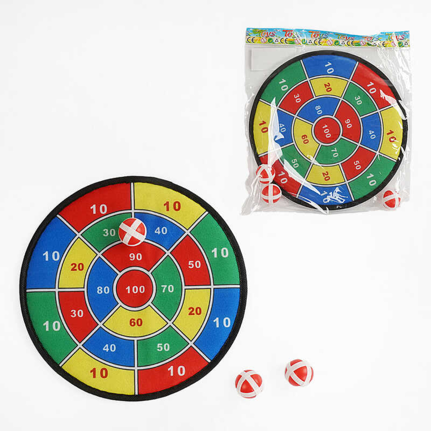 Дартс на липучці, 36см, 2 м'ячі, 2 дротики, маркери, серветки, 10видів, у п/е 38-42-6см /48/