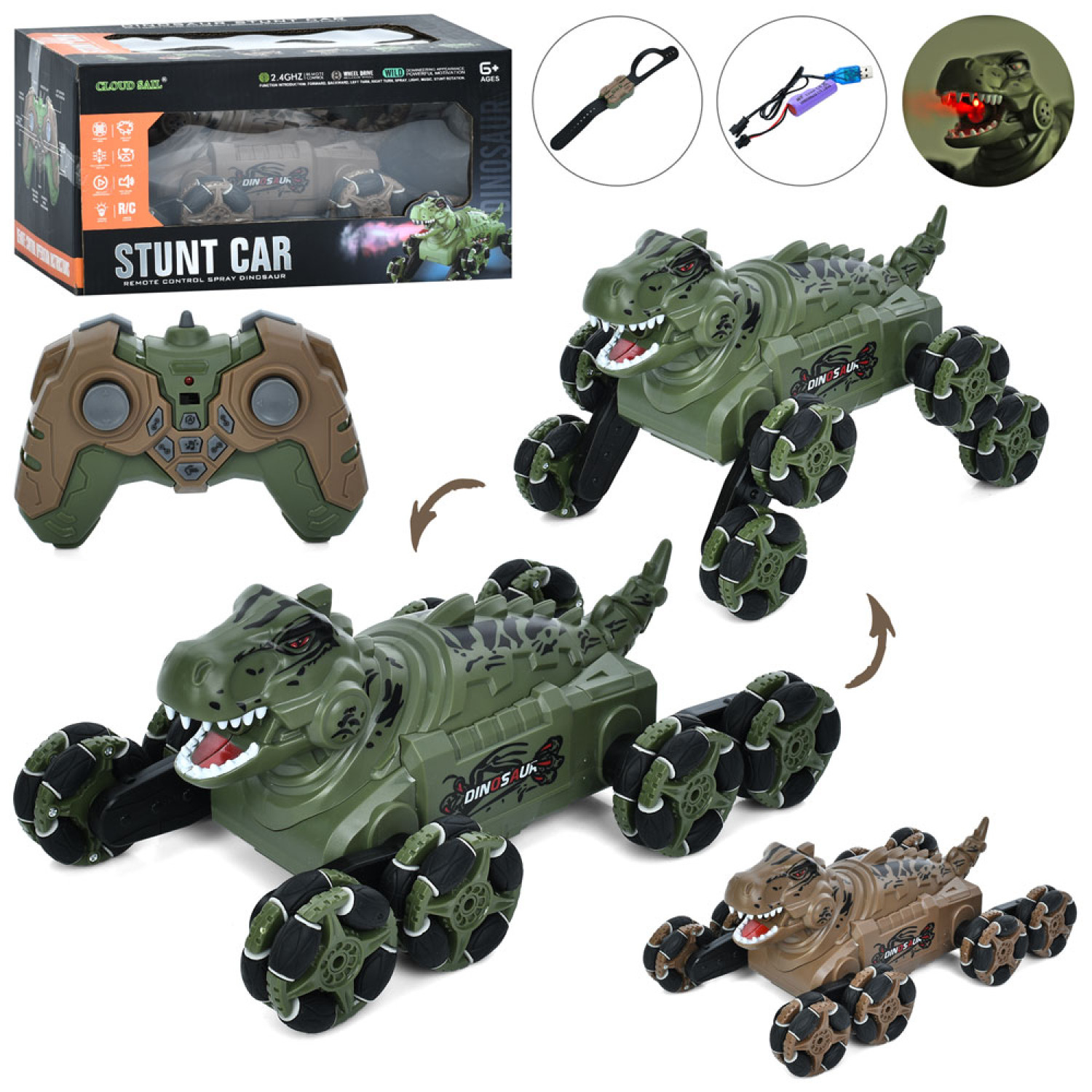 Динозавр р/к, 2 пульти (1шт браслет на руку), акум, динозавр, 26,5см, світло, музика, звук, колеса-ролики, пара/дим, USBзарядне, 2 кольори, в кор-ці, 29-15,5-18,5см /12/
