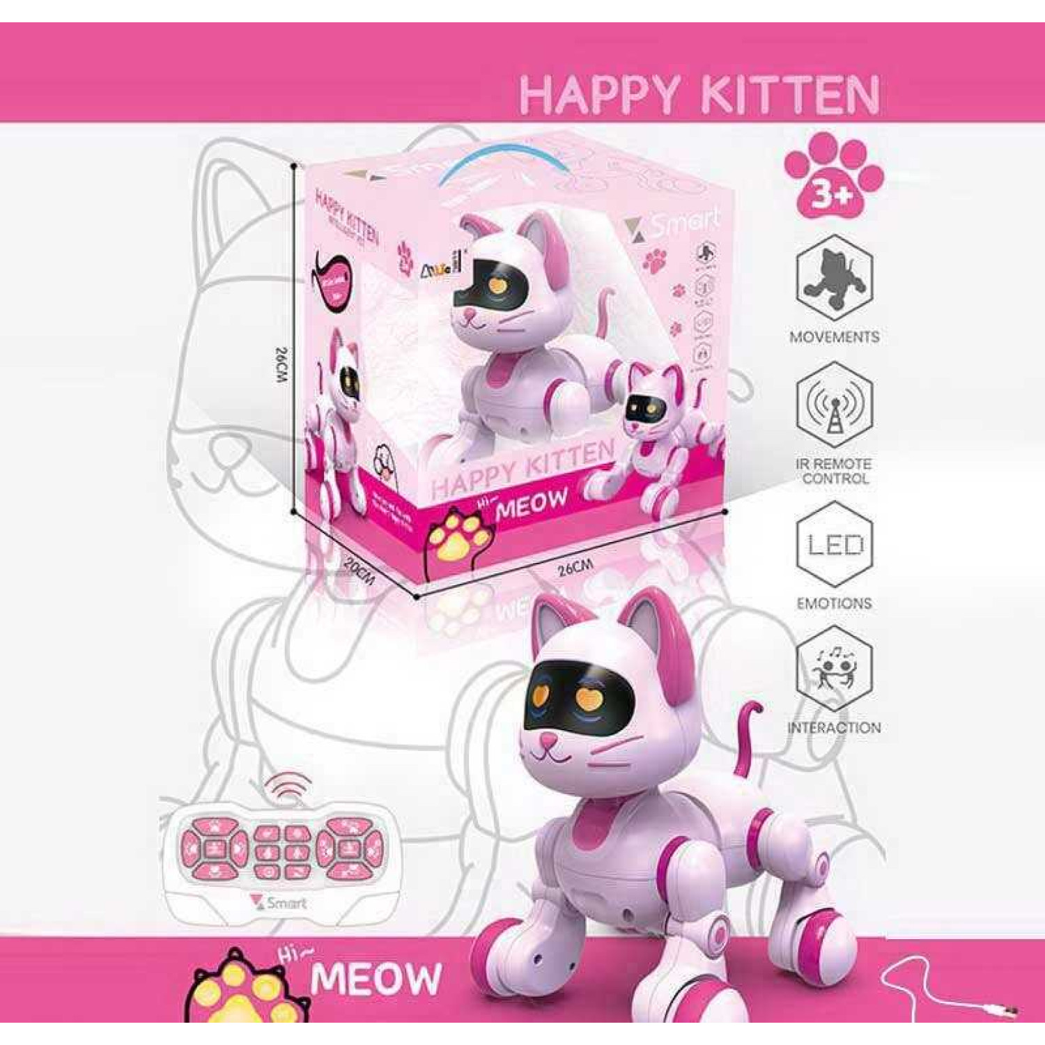 Основні характеристики: котик має розмір 19 см, управління з пульта д/к (ІЧ), кіт працює від акумулятора (в комплекті) і заряджається від USB зарядного пристрою, пульт управління котиком працює від батарейок (до комплету поставки не входять), котик їздить, танцює, має звукові та світлові ефекти.