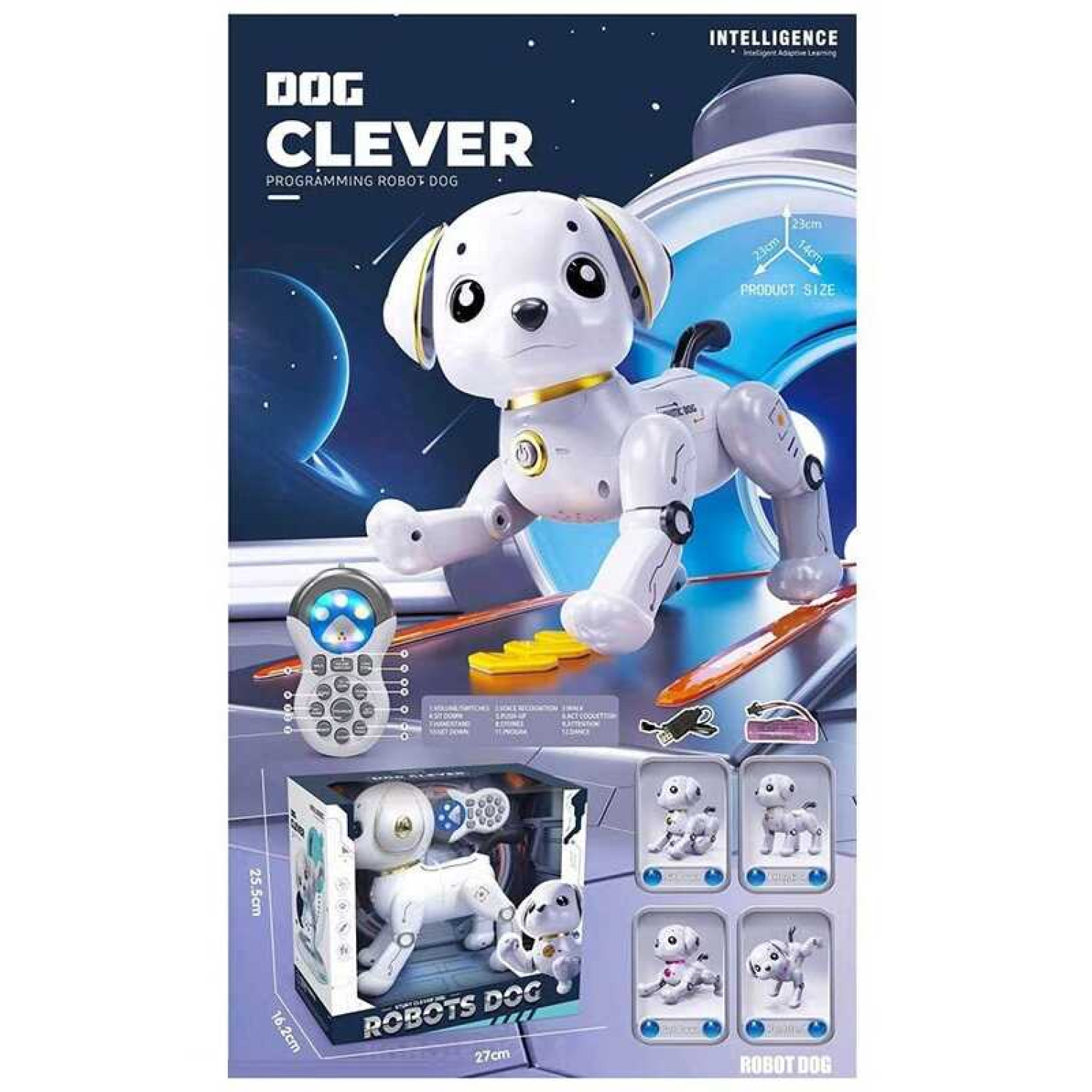 Особливості: Розміри: 23х14х23 см. Собачка працює від акумулятора 3.7 V, який разом із дротом для його підзаряджання включено до набору. Пульт керування іграшкою працює від двох батарейок типу "АА" (не включені до набору). Собачка має рухливі вушка та ноги. На голові песика розміщено сенсор, на дотики до якого він реагує рухами та аудіо. Іграшка має озвучення англійською мовою. Песик розказує казки та співає пісеньки англійською мовою. Іграшка танцює під пісеньки, які сама ж наспівує. Собачка має режим програмування, у якому можна записати власну послідовність рухів для неї. Іграшка виконує команди: сидіти, стояти, голос, стійка на передніх лапках та відтискання.