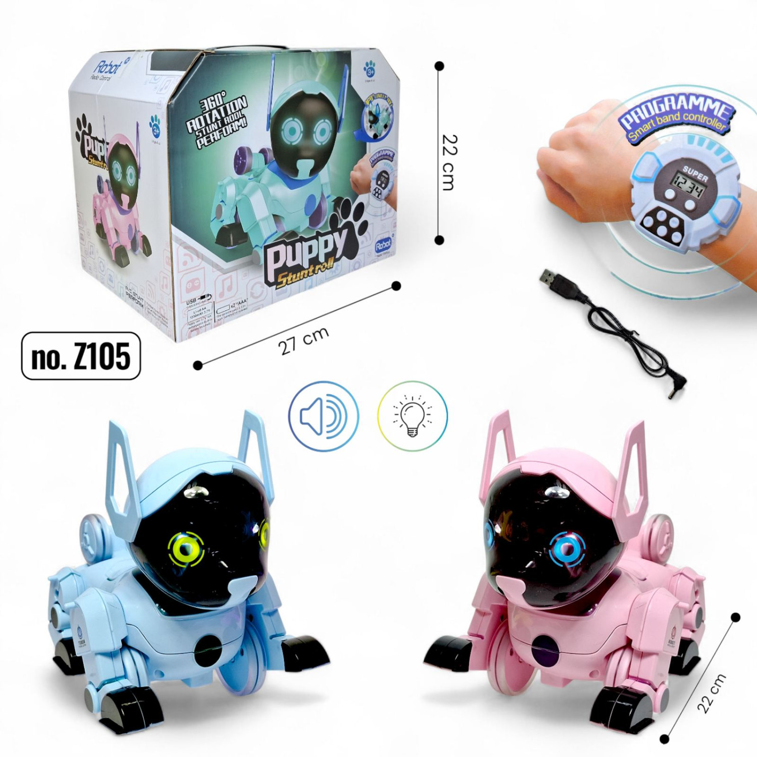 Робот р/у щенок, пульт в виде часов, 2 цвета, в кор 27*19,6*22см /12/