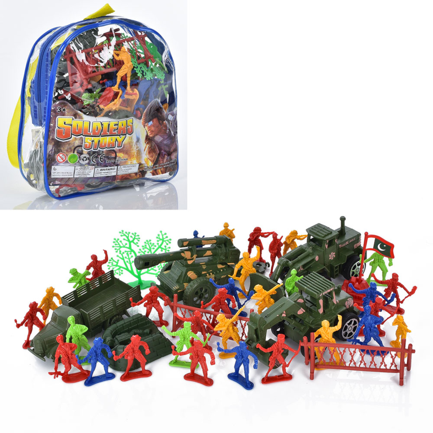 Cолдати в наборах військова техніка 4шт,12см, солдати 4колір, 32шт, в рюкзаку, 16-18-9см /60/