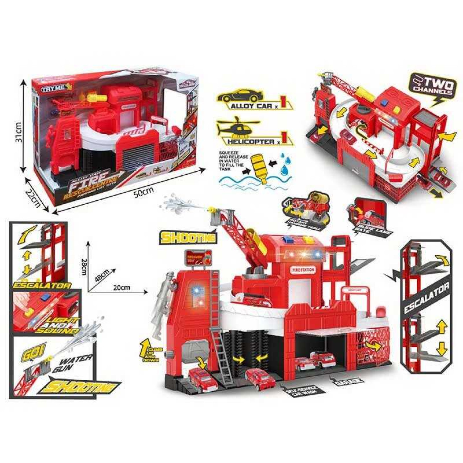 Парковка трек, механічний підіймач, підсвічування, звуки, на батарейках, рухомі елементи, металопластикова машинка та гелікоптер, механічно бризкає водою, в кор. /8-2/