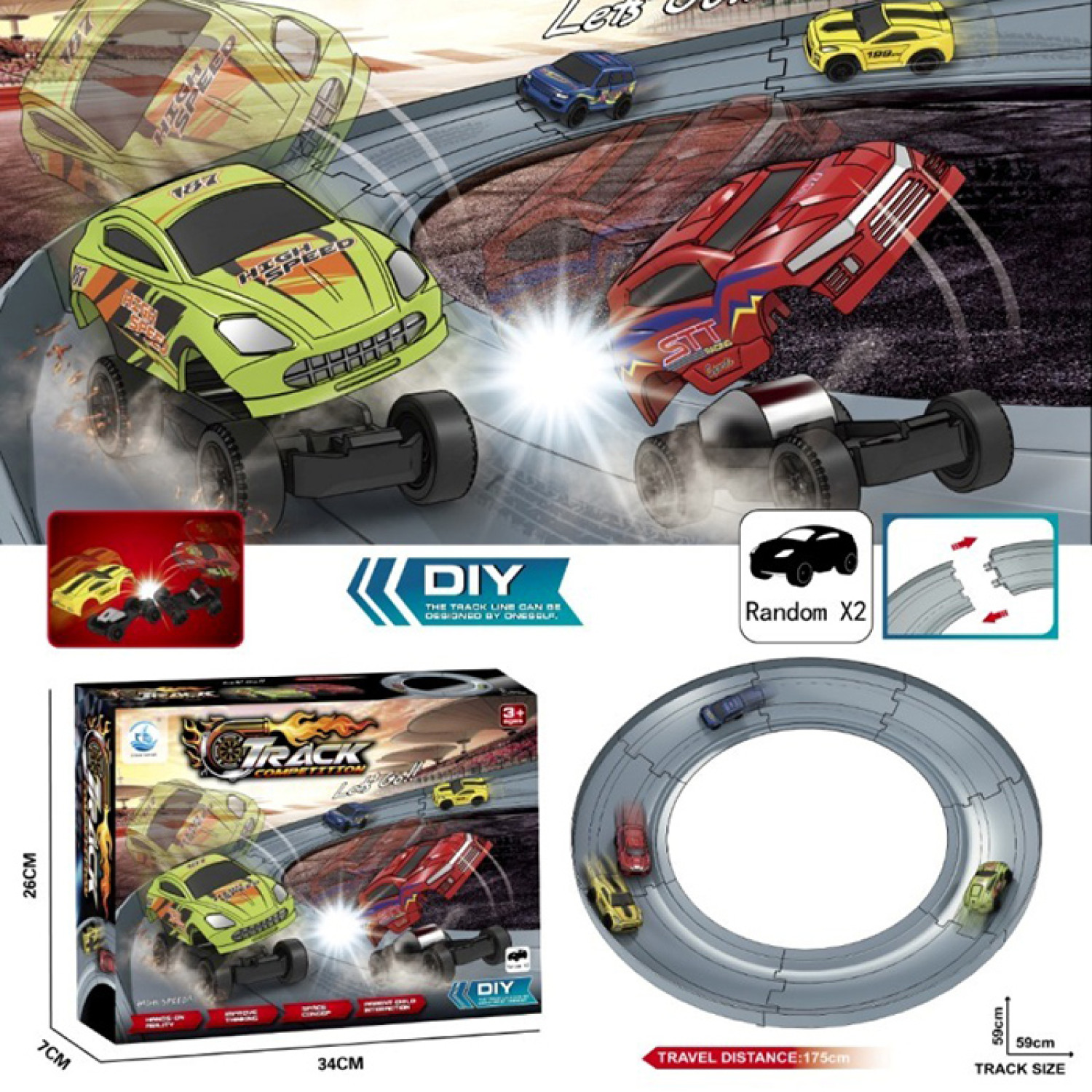 Трек 59-59см, машина 2шт (інерція, 7,5см, знімний корпус), в кор-ці, 34-26-7см /18/