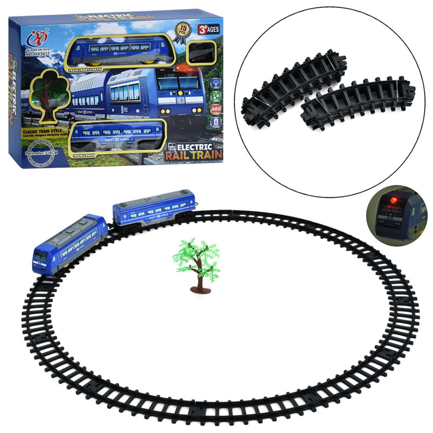 Залізниця 318см, локомотив, 1 вагон, звук, світло, дерево, 15дет, на бат-ці, в кор-ці, 36-25-6,5см /24/