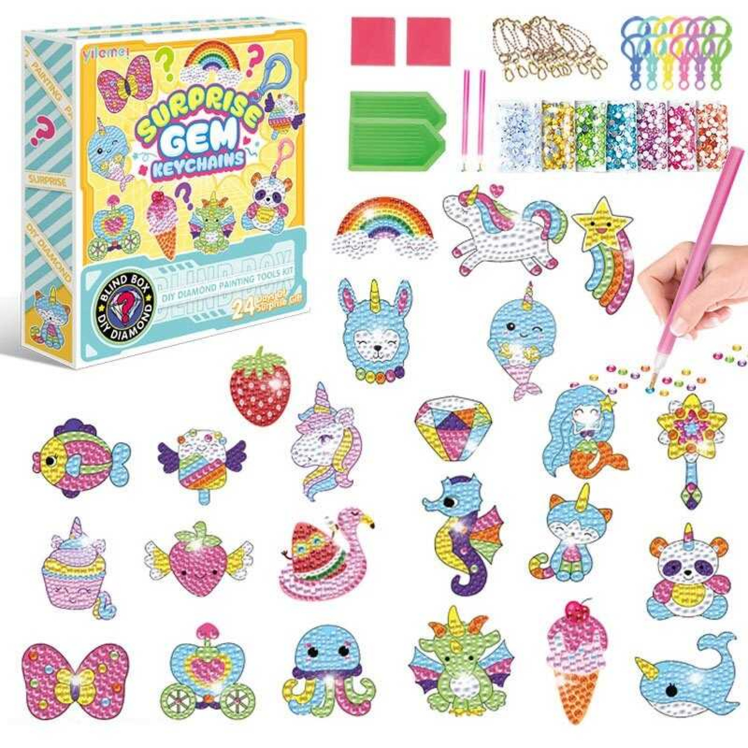 Особливості: Набір виконано у вигляді адвент-календаря з 24 віконцями. 24 брелоки із липкою основою для прикрашання. 24 кріплення для брелоків: 12 пластикових і 12 металевих. 20 кольорів алмазів. 2 таці, 2 стилуси, віск.