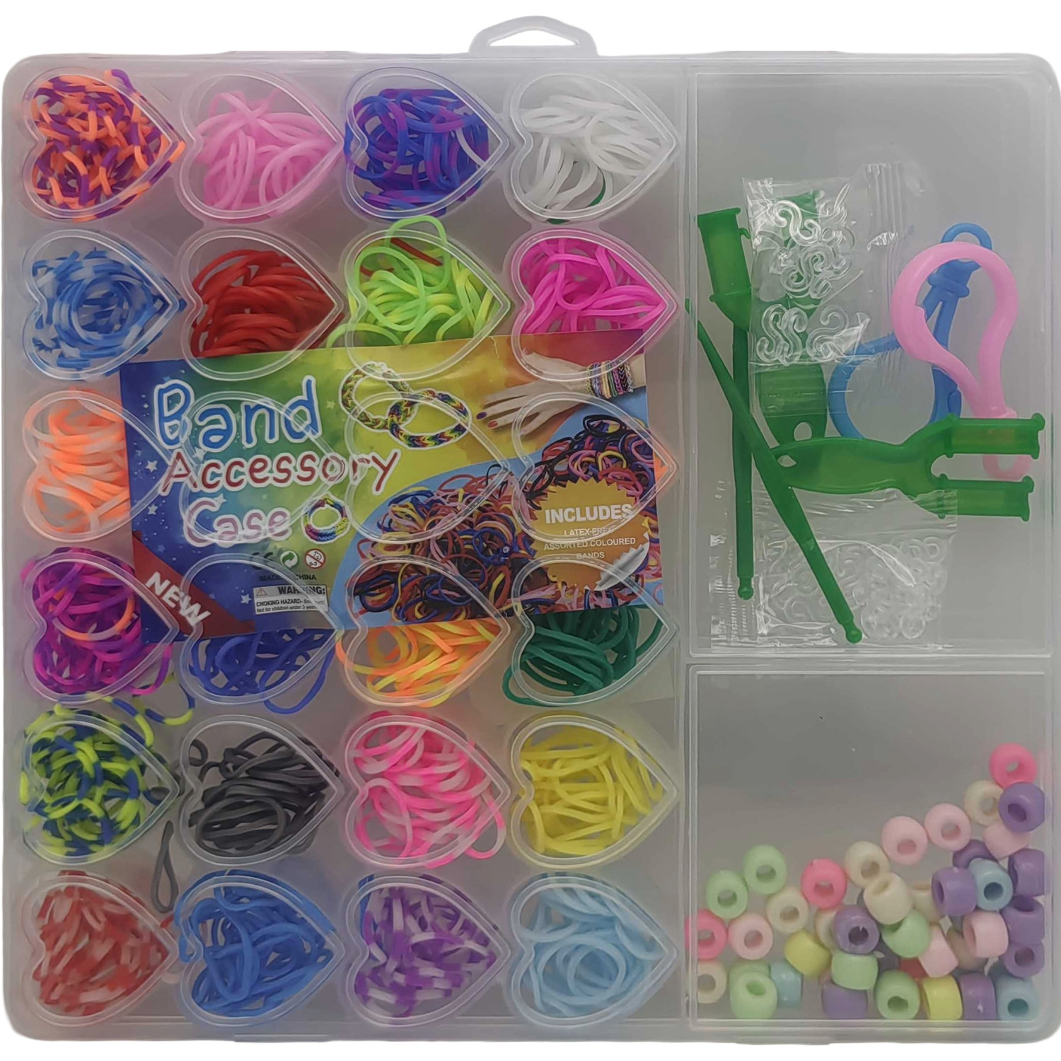 Н-р для плетін.-гумочки 400шт.у кор."Сердечки"+намистинки + інстр-ти_20*19см (1*120)