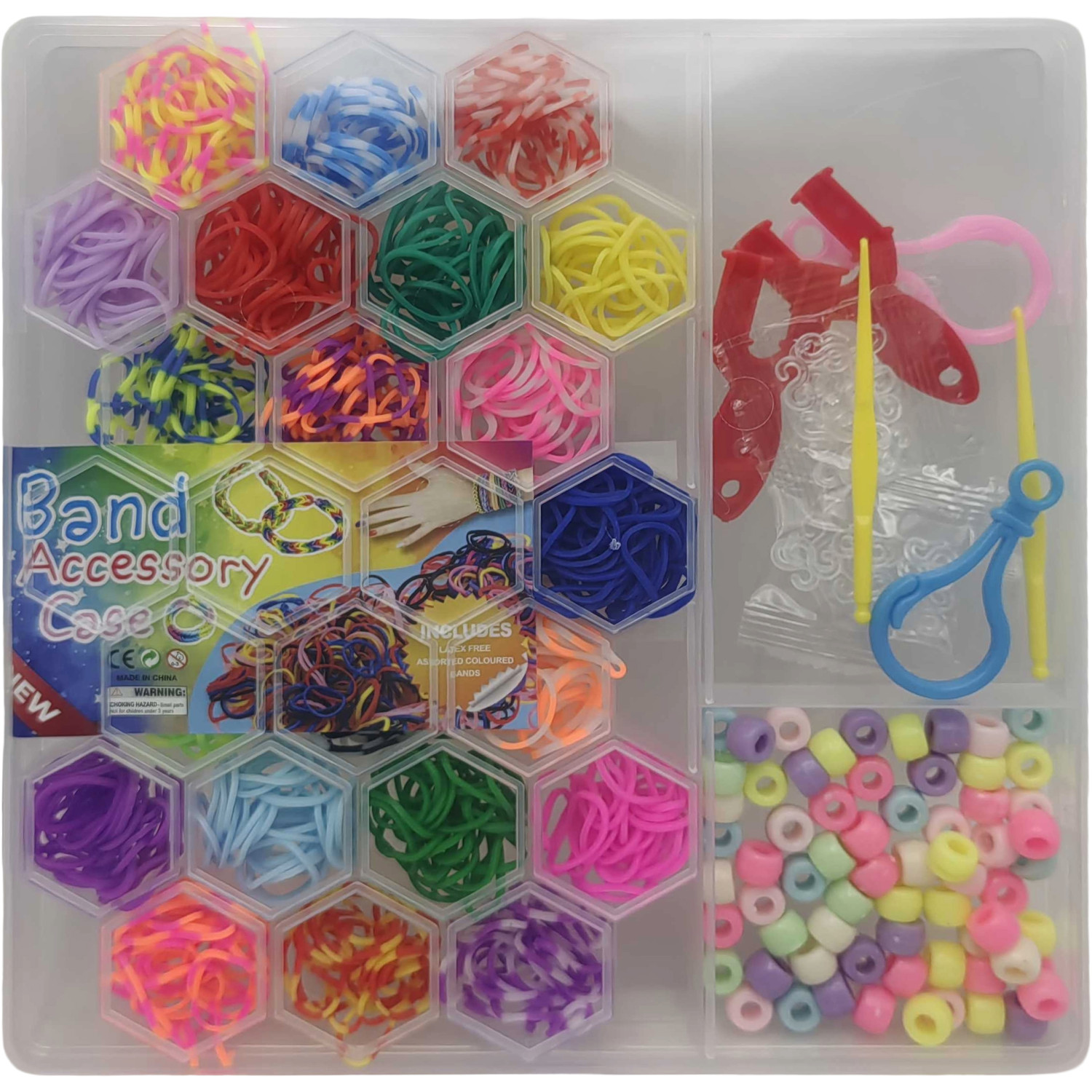 Н-р для плетін.-гумочки 400шт.у кор."Соти"+намистинки + інстр-ти_20*19см (1*120)