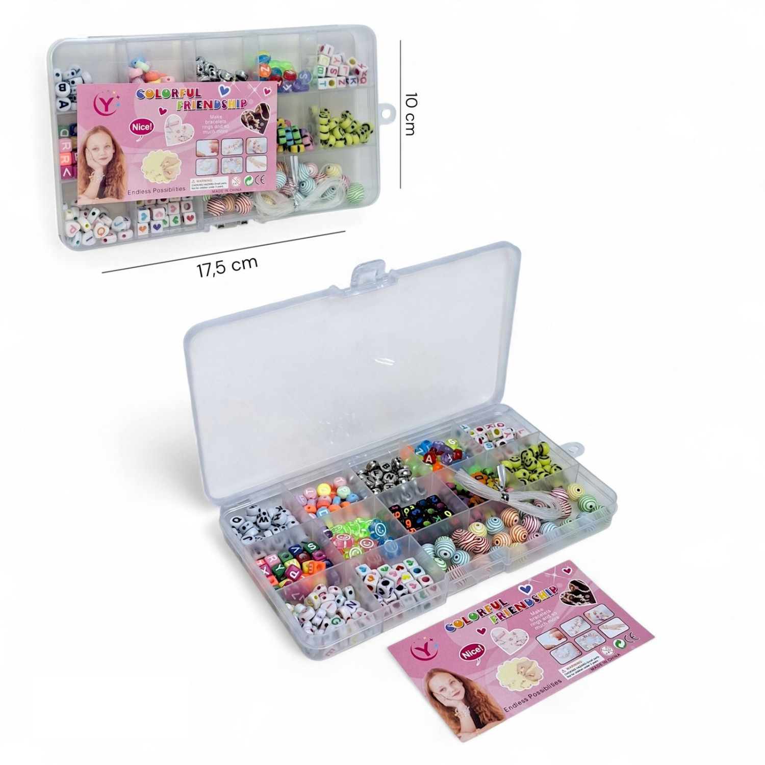 Особливості: В наборі пластикові бусини різної форми, розміру та кольору. В комплекті волосінь. Упаковка: пластиковий бокс 10х17,5 см.