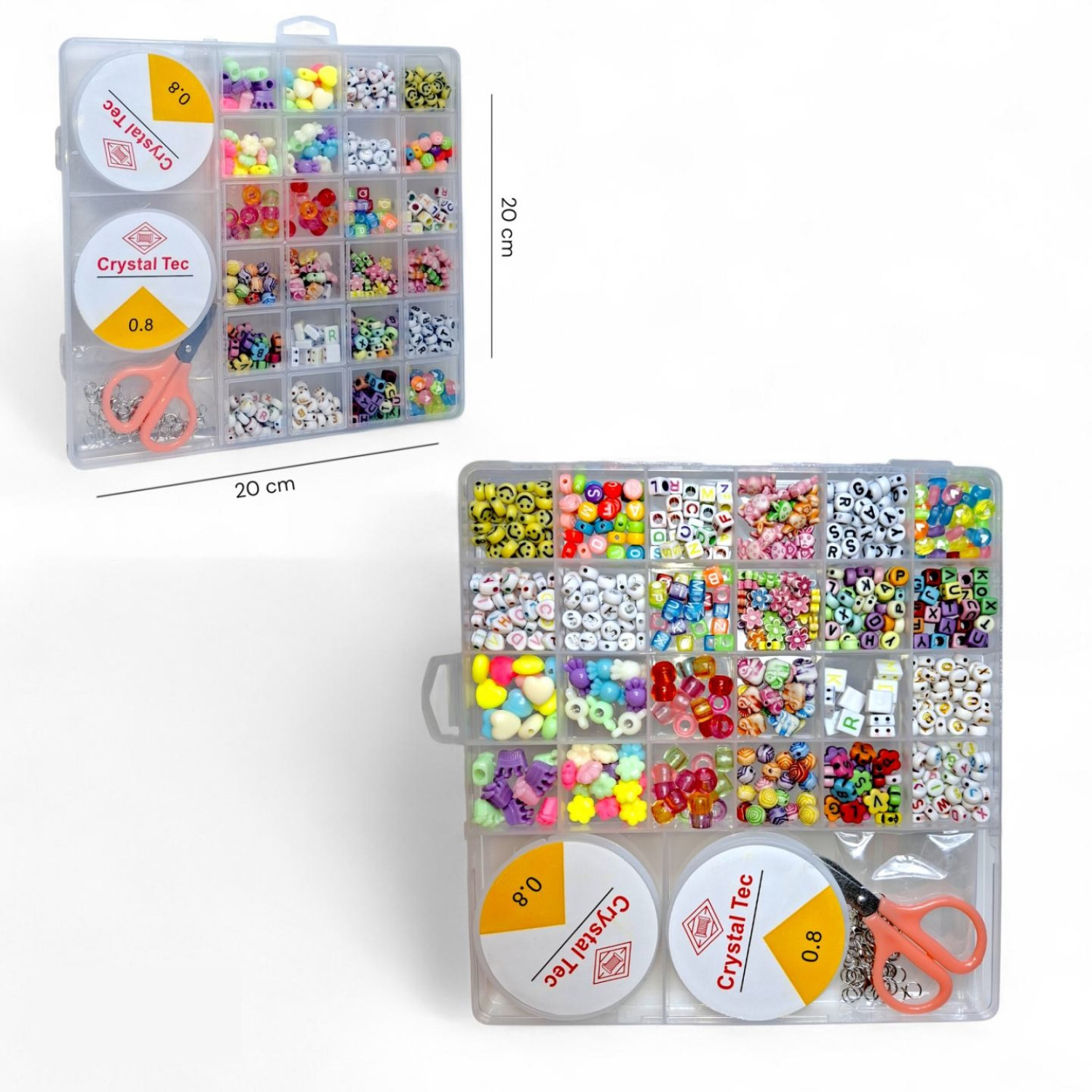 Особливості: В наборі пластикові бусини різної форми, розміру та кольору. В комплекті ножиці, нитка для прикрас, металеві кріплення. Упаковка: пластиковий бокс 20х20 см.
