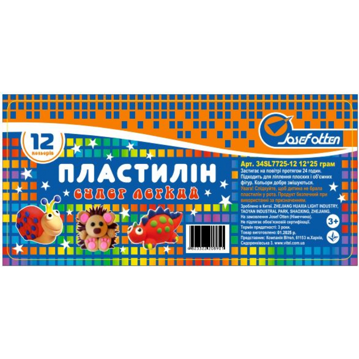 Пластилін супер легкий Josef Otten, 12кол. * 9грам , OPP