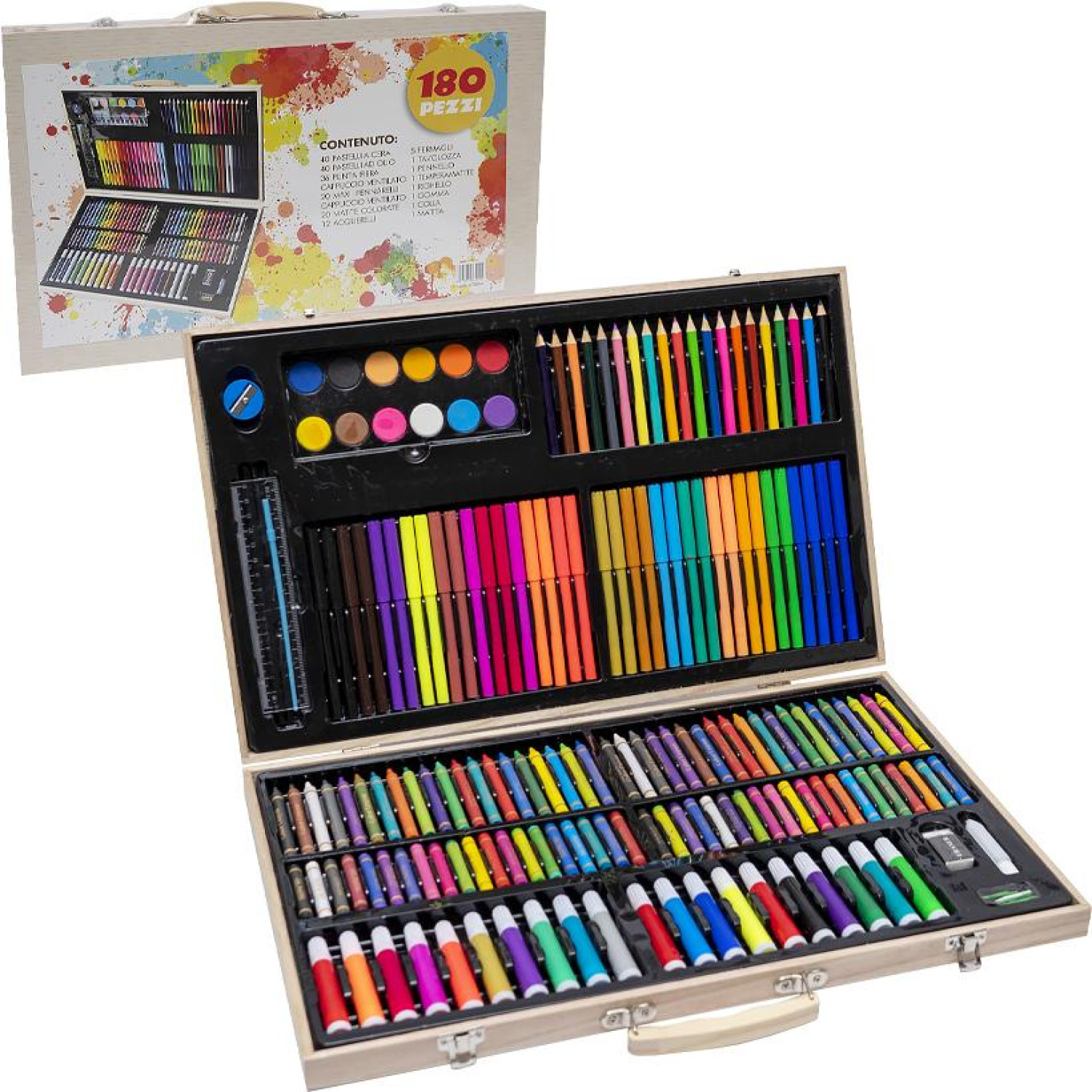 Дитячий набір для малювання - чудовий подарунок для дитини. У набір входить: 36 фломастерів, 40 шт. воскової крейди, 40 шт. масляної пастелі, 20 кольорових олівців, 20 маркерів, 5 скріпок, 12 кольорів акварелі, пензлик, палітра, точила, клей, лінійка, гумка, графітовий олівець. Розмір кейсу 47*30*4,5 см.