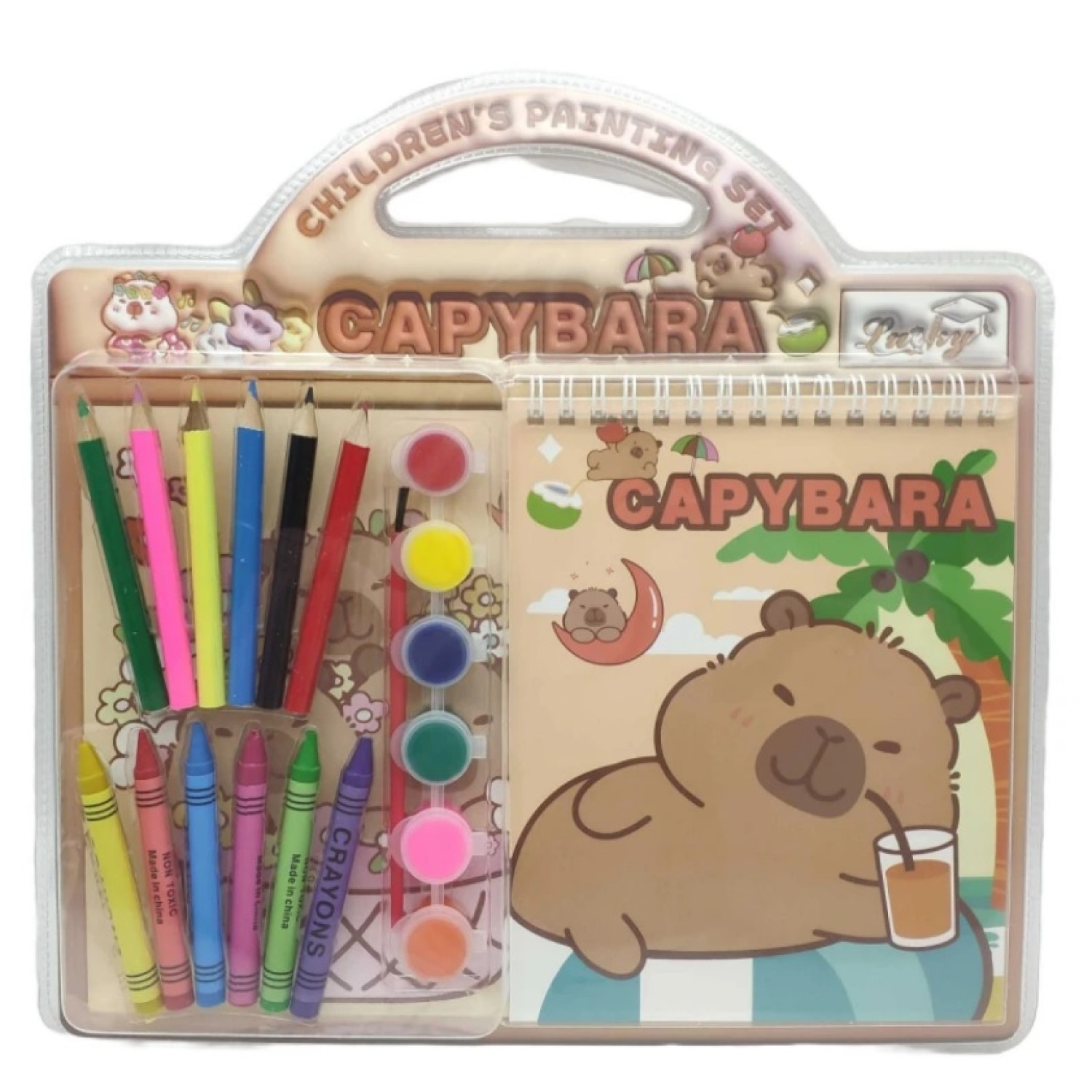 Н-р - Альбом-розмальовка "Капібара" 6арк.,олівці,фарба 6кол.,пензлик_27*22см (6*28)
