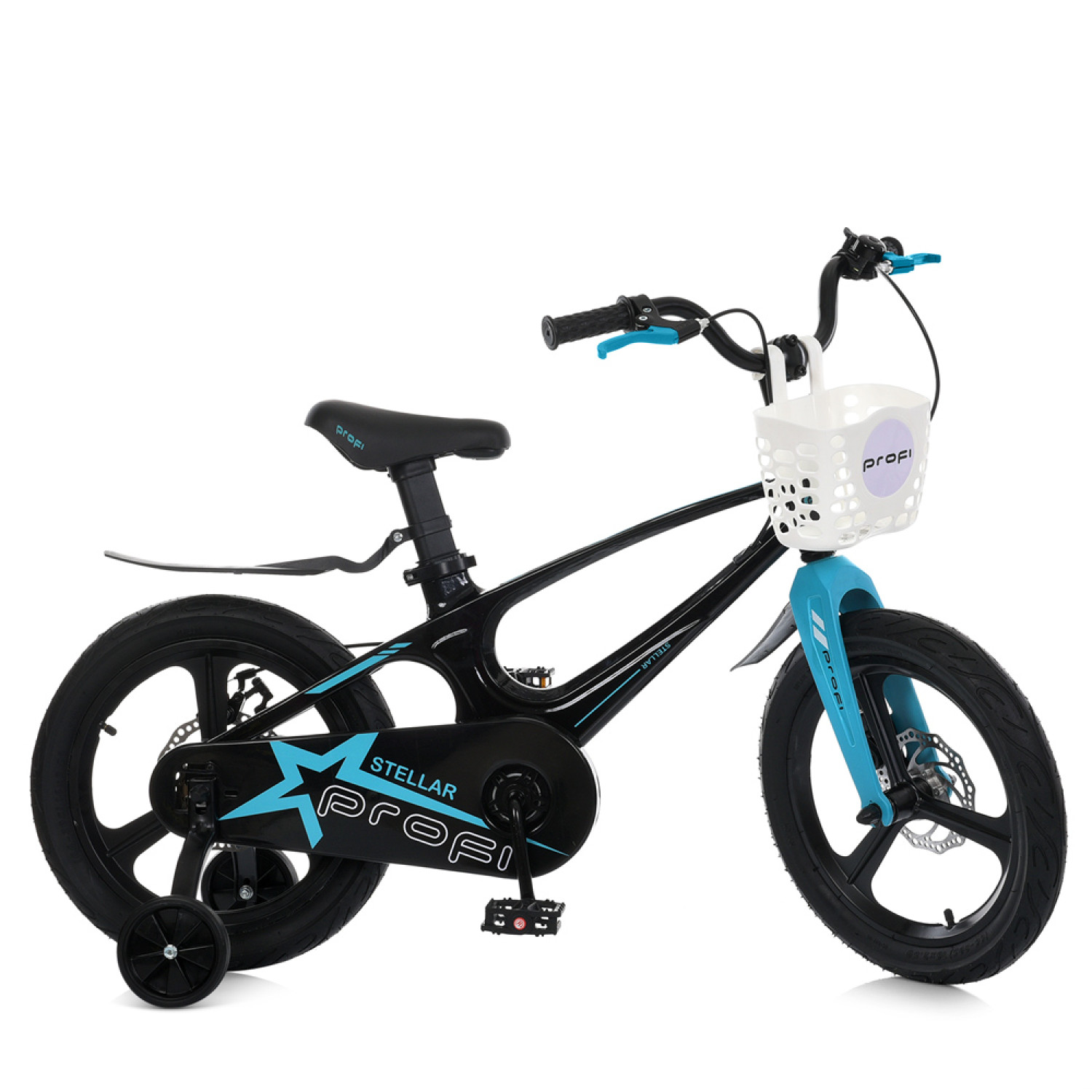 Велосипед дитячий PROF1 14д. MB 141020-1 (1шт) STELLAR,SKD75,магнез.рама,вилка,обод,перед/зад.диск.торм.,кошик,крила,доп.кол,чорно-блакитний