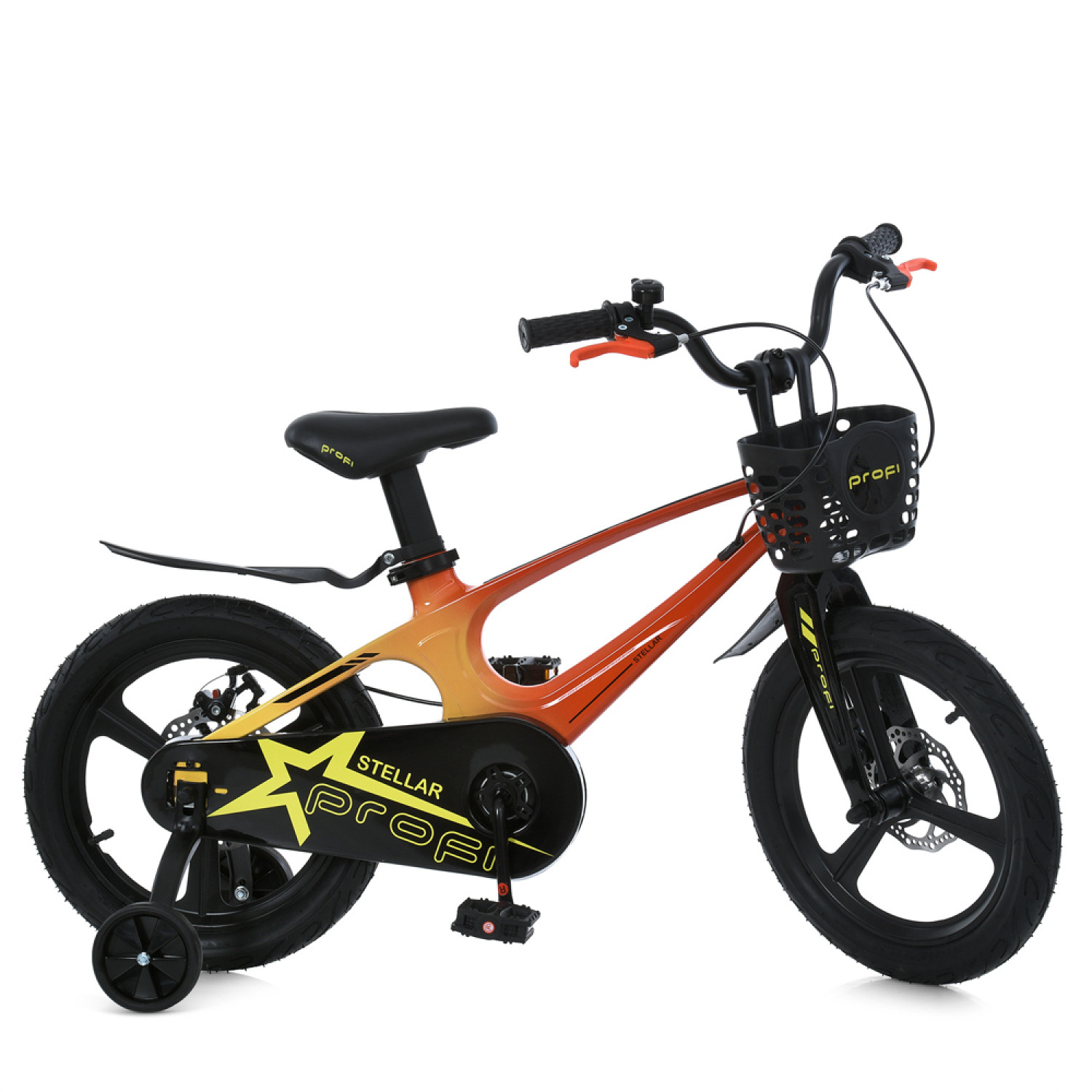 Велосипед дитячий PROF1 14д. MB 141020-6 (1шт) STELLAR,SKD75,магнез.рама,вилка,обод,перед/зад.диск.торм.,кошик,крила,доп.кол,червоно-жовтий