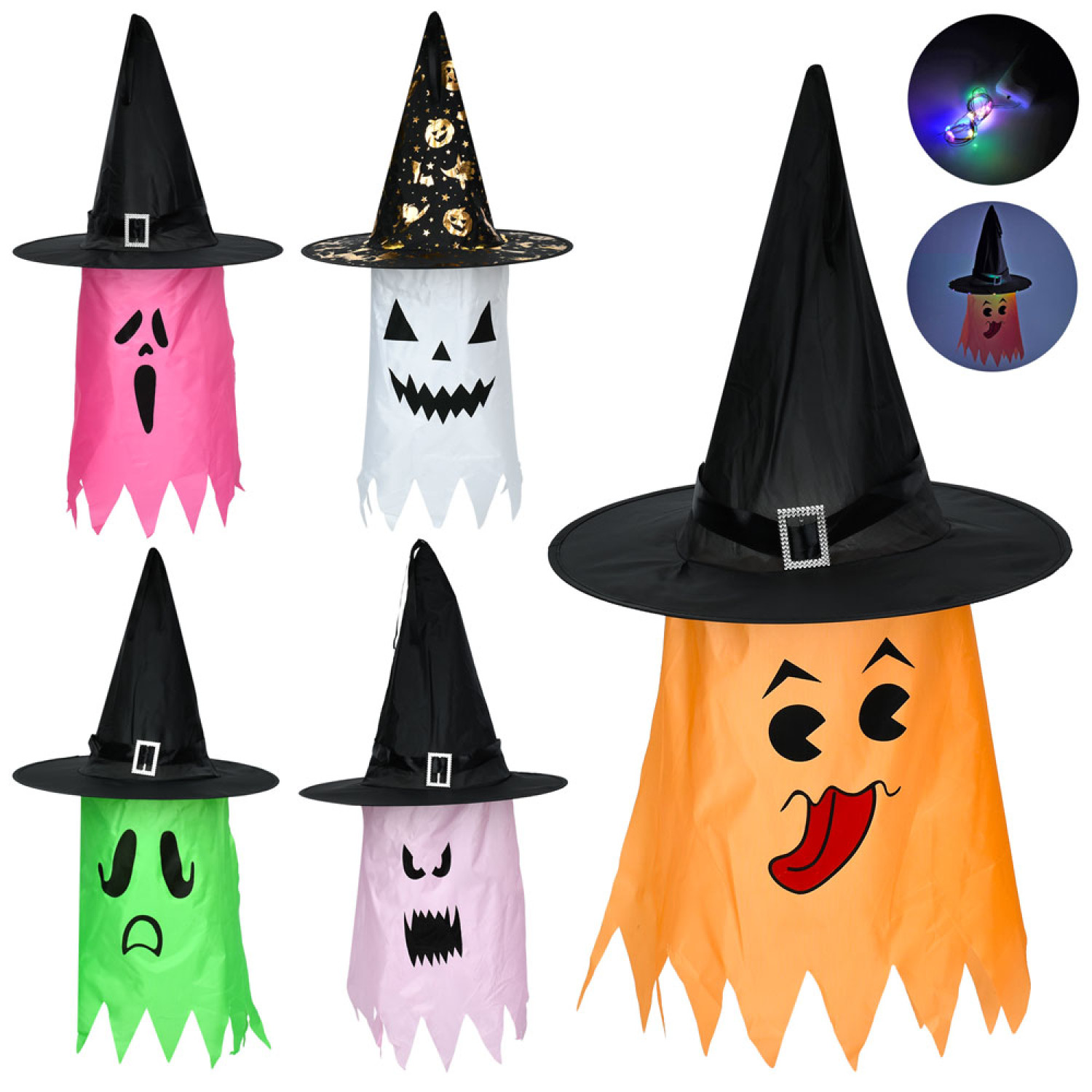 Аксесуари для свята капелюх, 38-38-в38см (складний), накидка-привід, світло, Хелловін / Halloween,мікс видів, бат(табл), /65/60/12шт в уп.