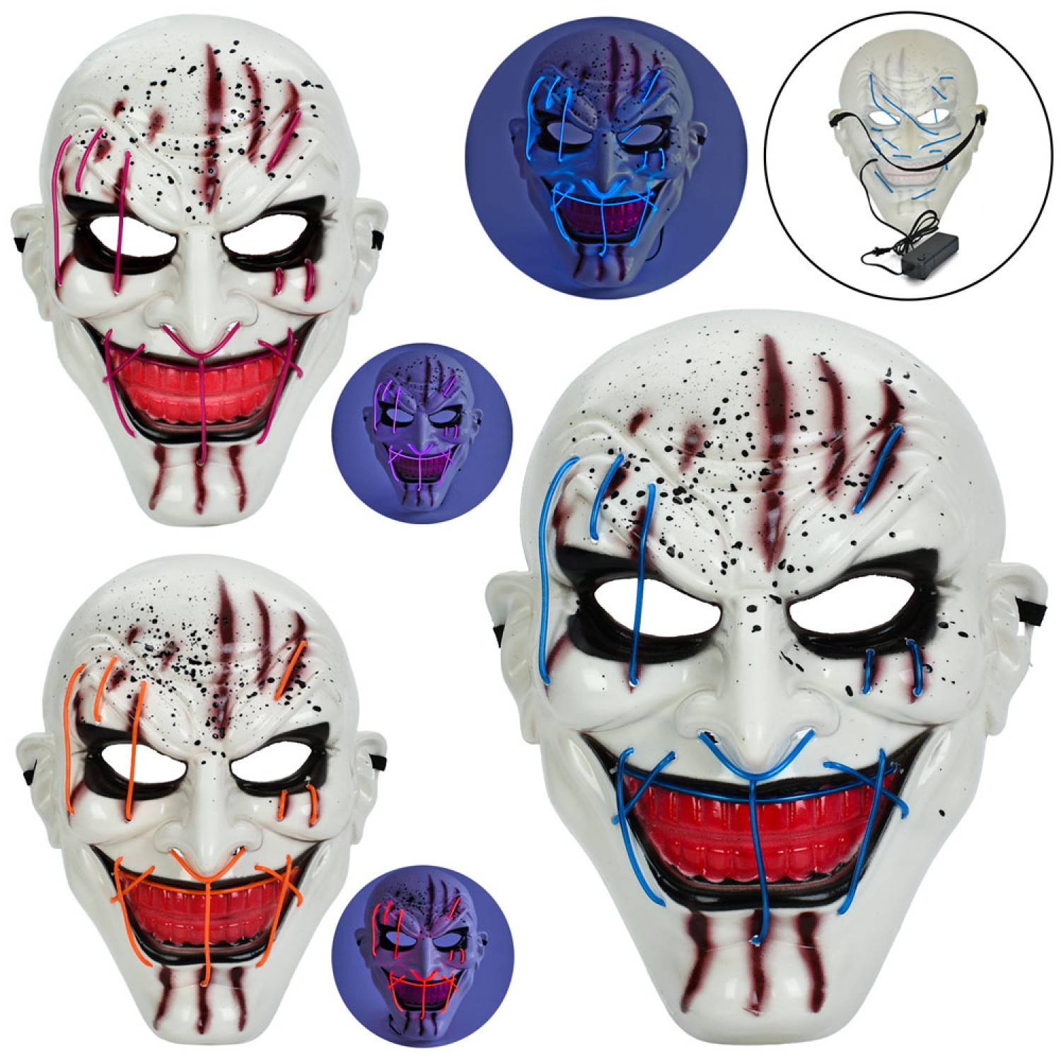 Аксесуари для свята маска, Хелловін / Halloween, 28-20-9см, світло-3режими, резинка, мікс кольорів, на бат-ці, у п/е /36/
