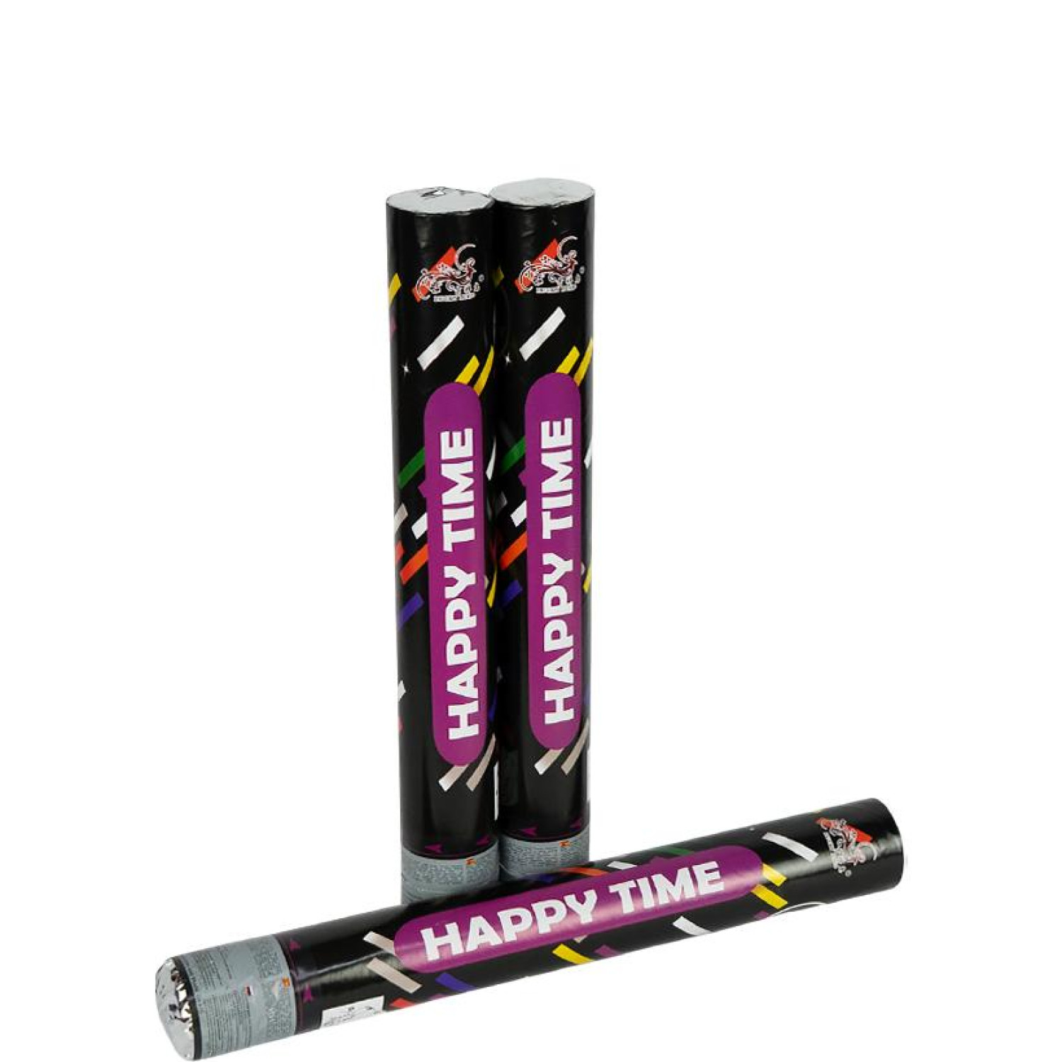 Хлопавка довжиною 40 см з пневматичним механізмом. Наповнена кольоровими конфетті розміром 5х2 см з фольги.
