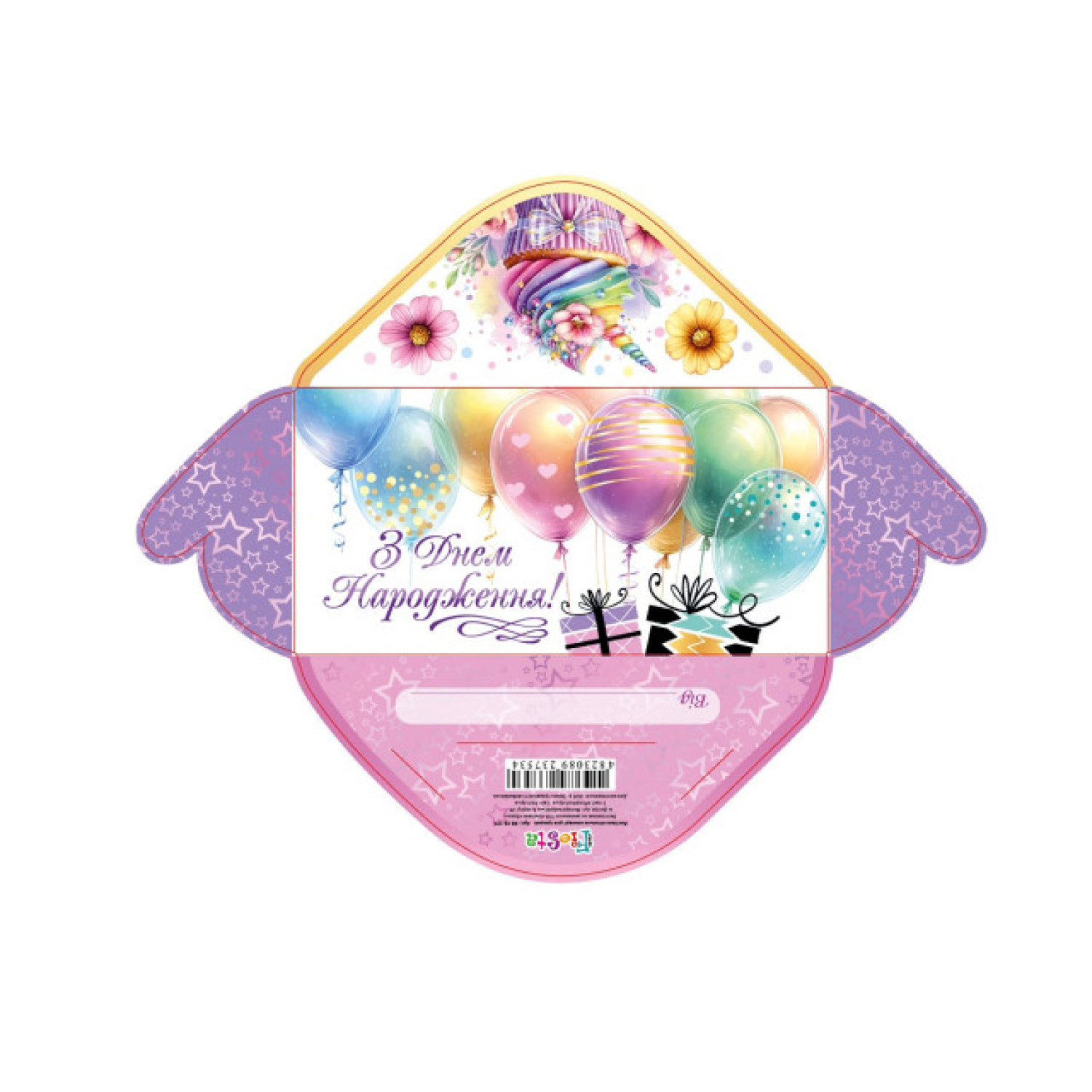 Конверт для грошей КВ25-171 З днем народження, ціна за 10 шт. //