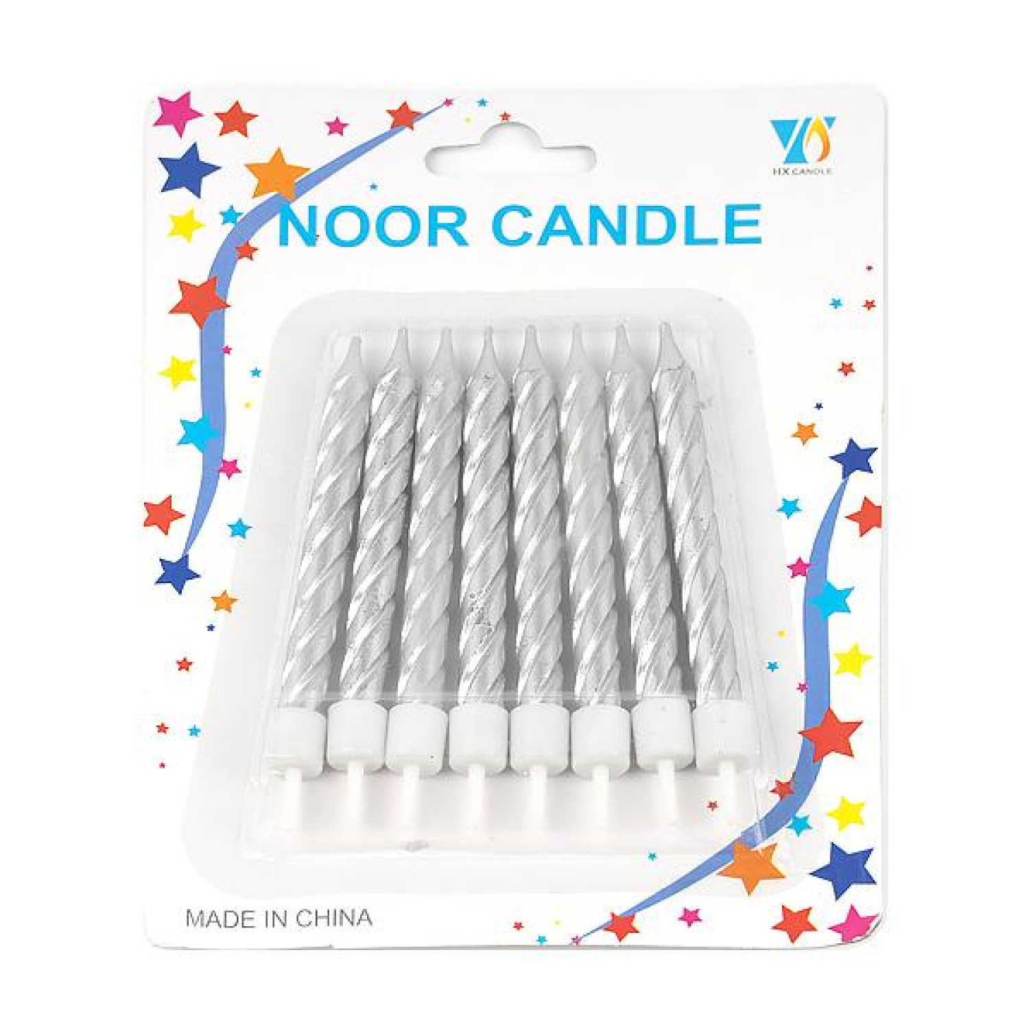 Свічки сатинові з підставкою. Довжина свічки: 9 см. На блістері 8 штук. Колір: срібло.
