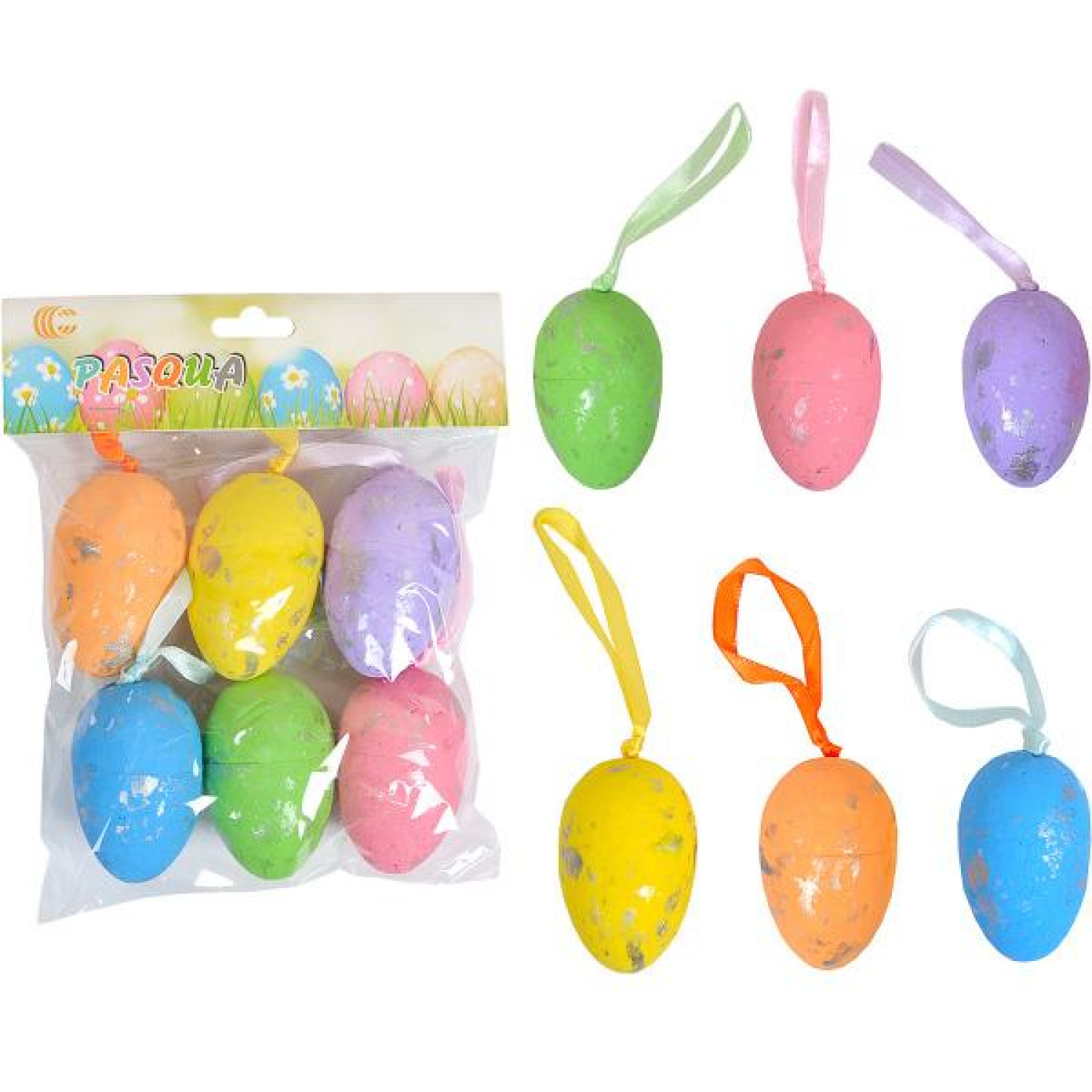 Набір Яйця декоративні 6шт кольорові зі стрічкою 6см HA-405, в п-е/360/