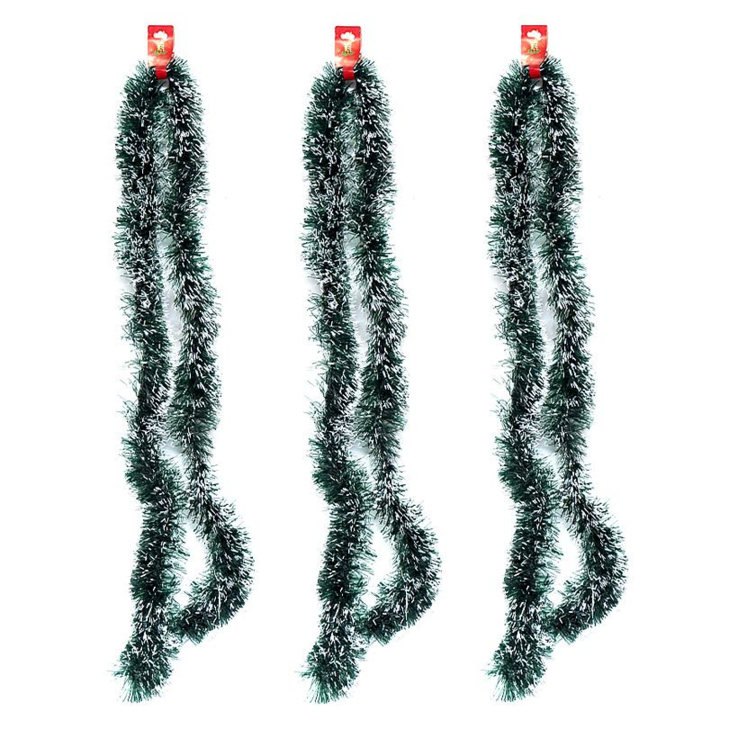 Новорічна мішура довжиною 2 метри та шириною 9 см — прикраса з ефектом інею, виконана в темно-зеленому кольорі з білими кінчиками. Завдяки густій структурі та легкому мерехтінню створює враження засніженої ялинки й чудово підходить для святкового оформлення. В упаковці 10 штук.