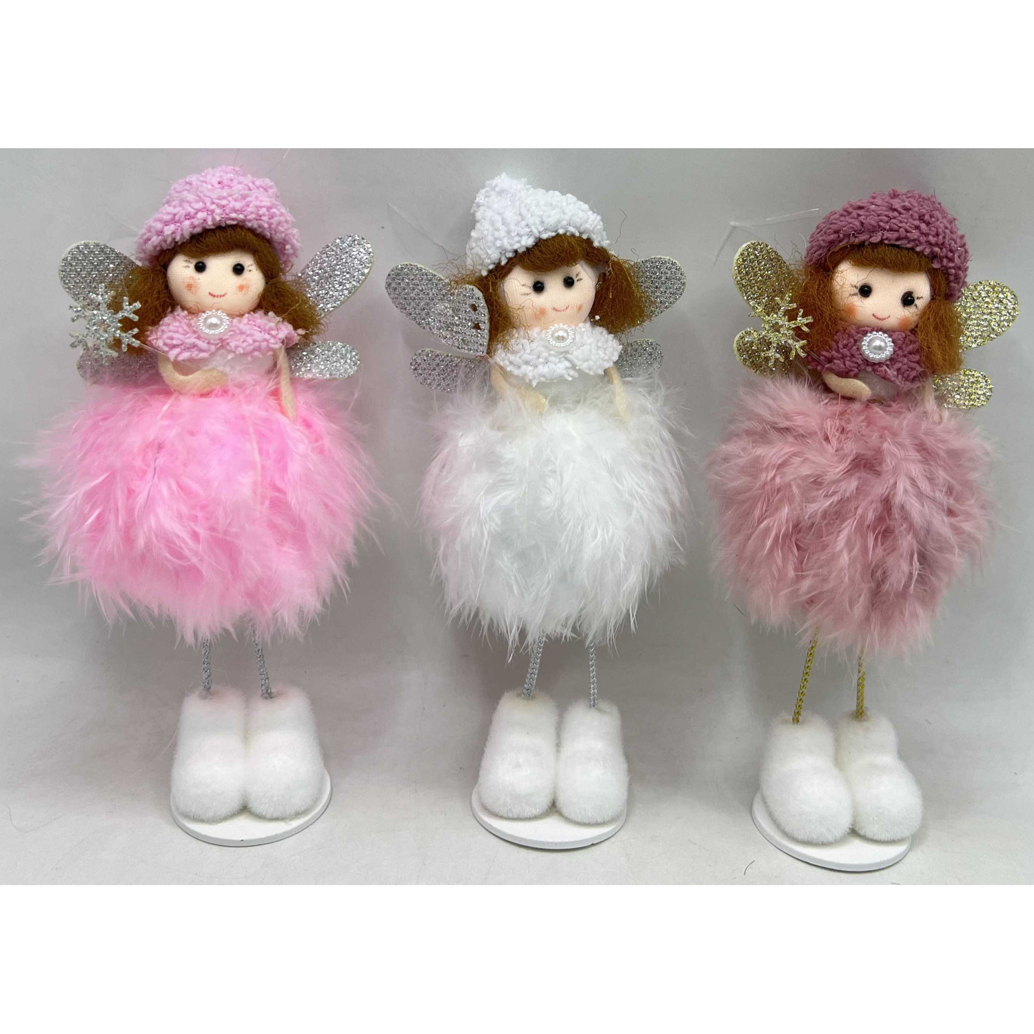 Іграшка декор новорічна "Янголятко в шапочці стоїть" 18см 3в.(40*12)