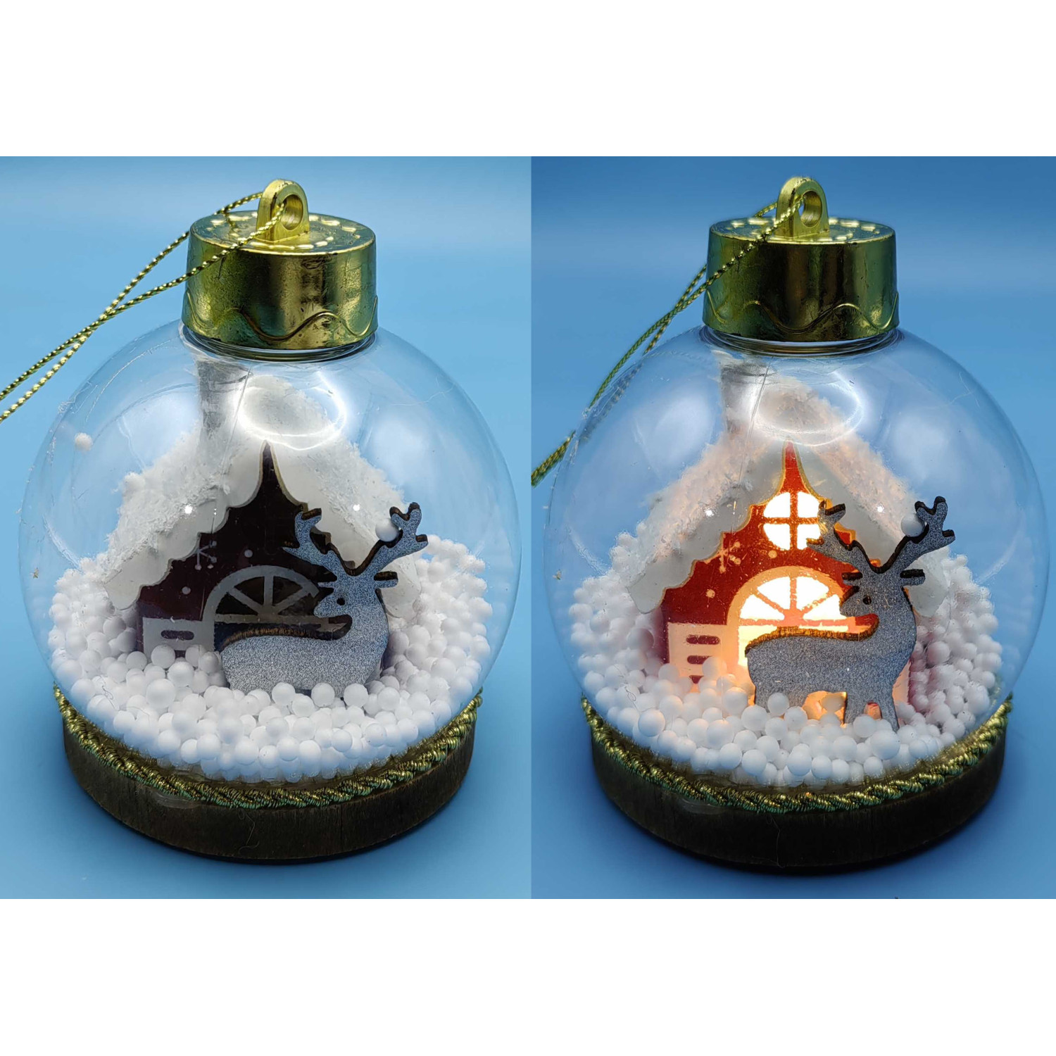 Іграшка на ялинку світиться LED "Куля 8см-Олень, Будиночок" (24*12)
