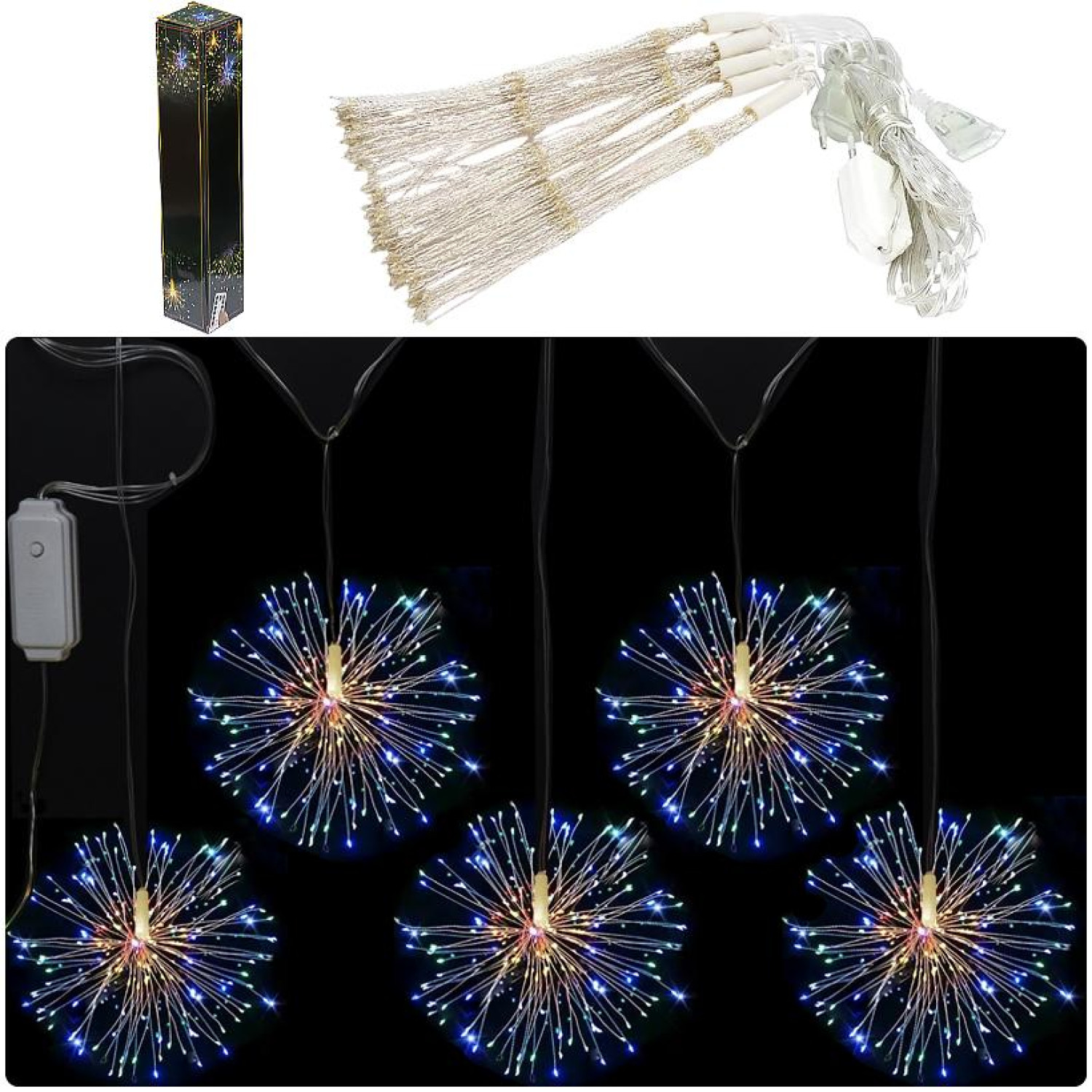 Яскрава електрогірлянда з різнокольоровими мікролампочками. Колір світіння ламп - мульти, режим світіння - 8 програм. Колір дроту - прозорий. Живлення - 220V. Світлодіоди розташовані на струнах по 30 шт., завдовжки 30 см. Загальна довжина 5 м. Є розєм збільшення довжини.