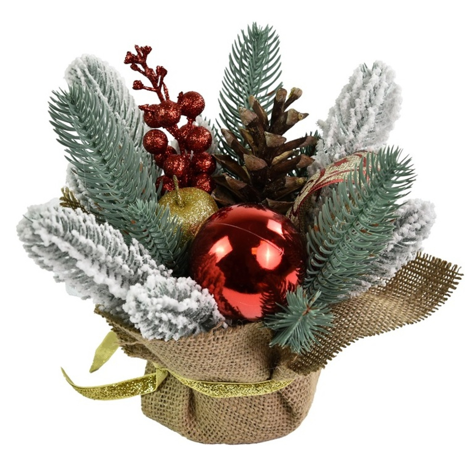Композиція новорічна настільна має у складі декоративні та натуральні елементи. Розмір 20х26 см.