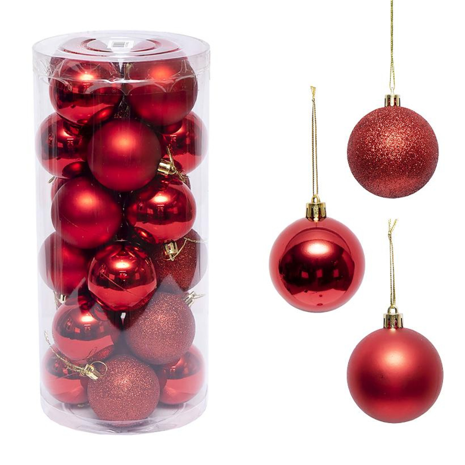 Набір ялинкових куль, 24 шт. в тубусі. Діаметр кулі - 4 см. В наборі 3 види.