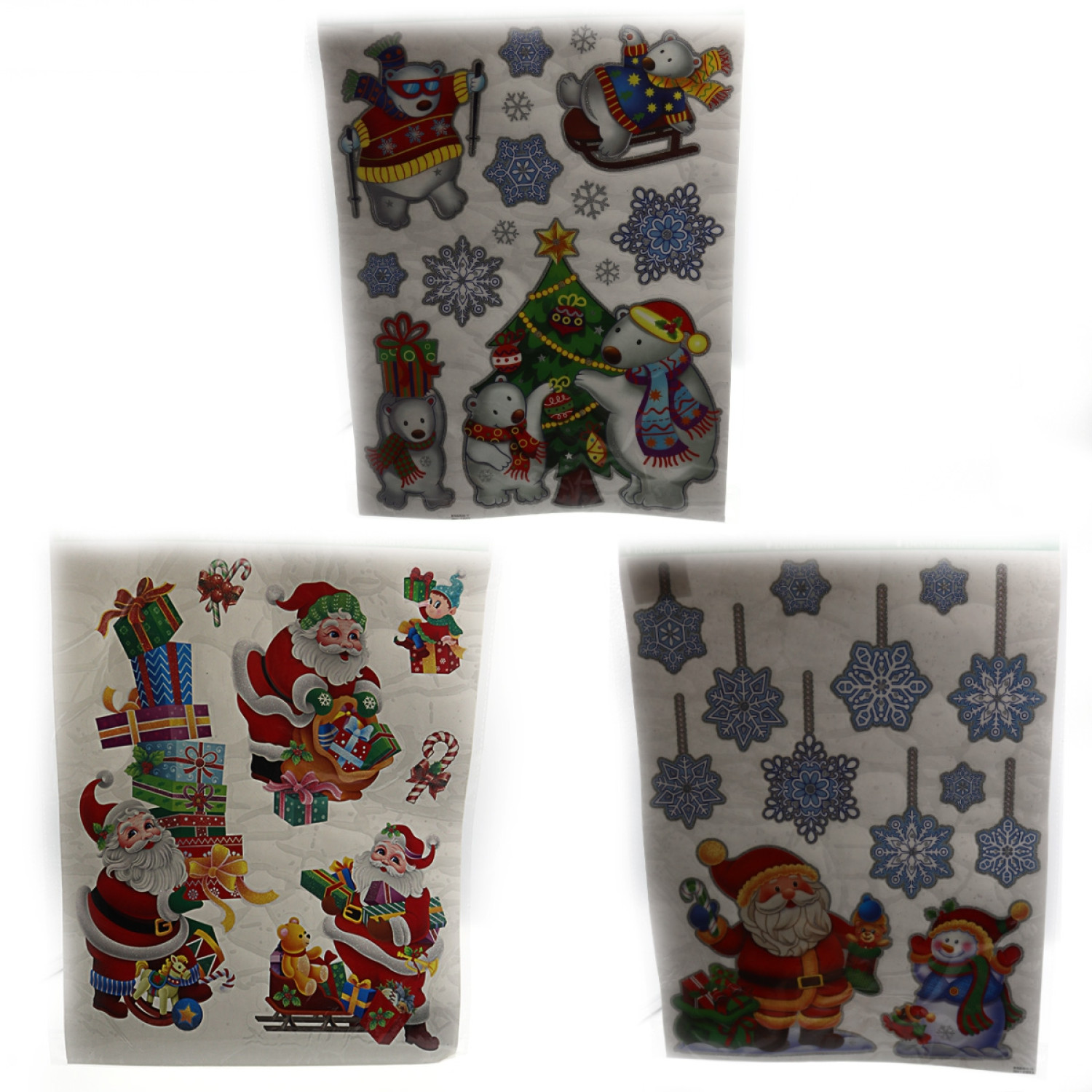 Наклейки/окон силикон с глиттером "Дед Мороз с подарками" 29*41см, mix, 1шт/этик.