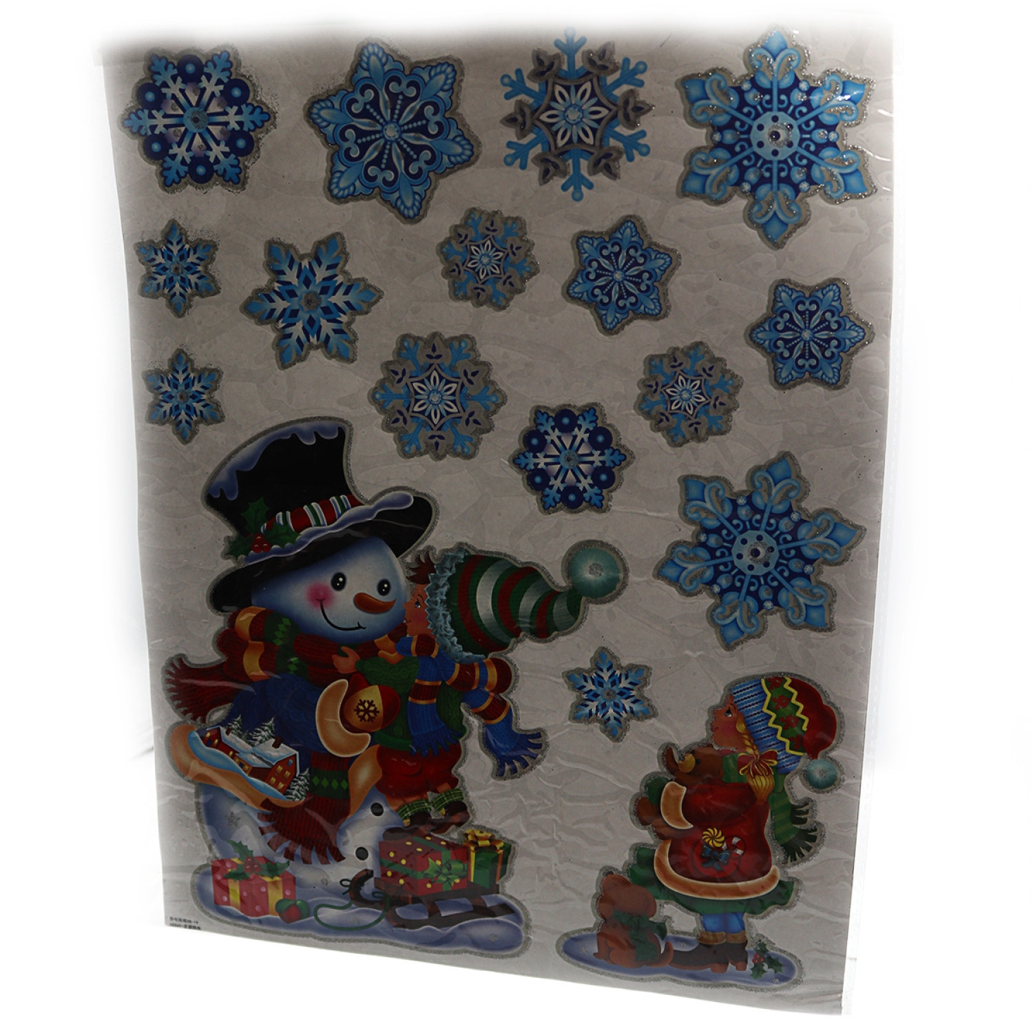 Наклейки/окон силикон с глиттером "Снеговик" 29*41см, 1шт/этик.