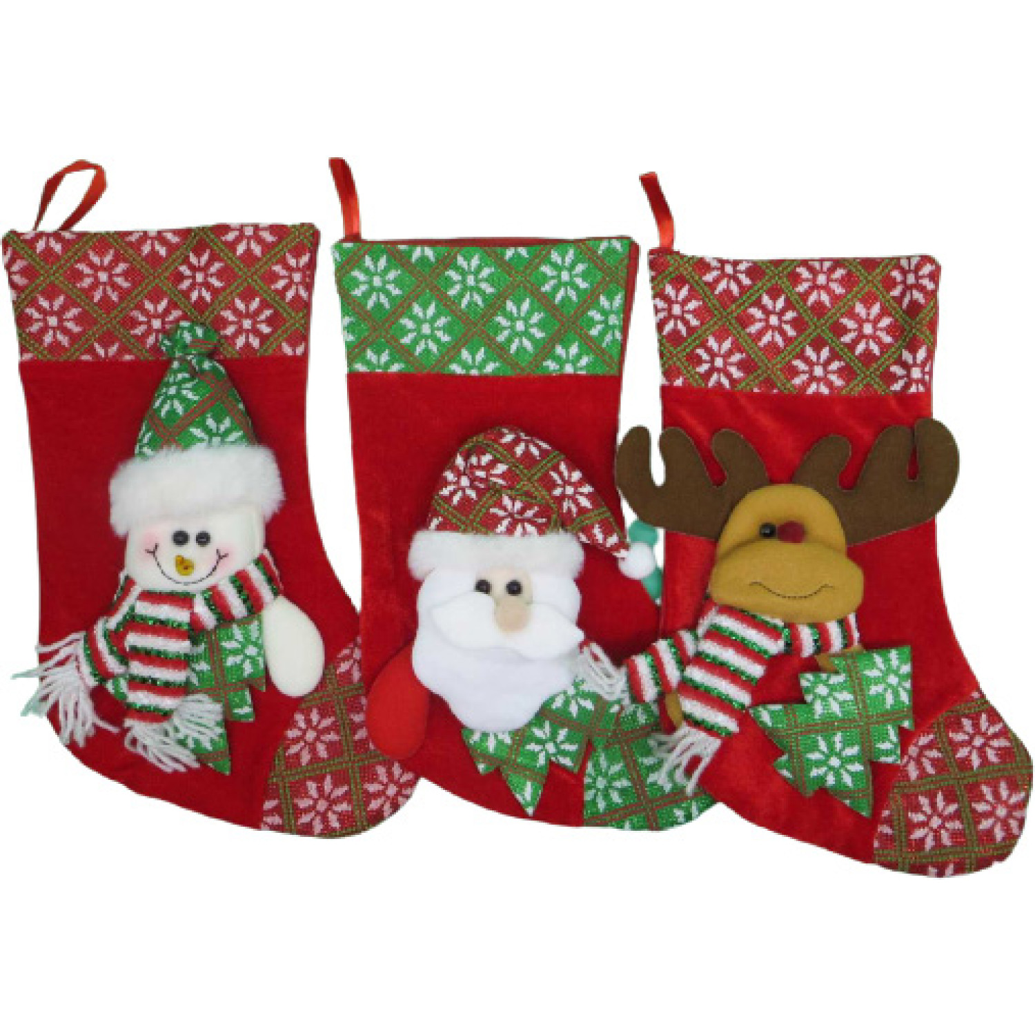 Носок д/подарк."Красный с аппликац.-Д.М., Снег.,Олень в шарфах" 33*20см 3в.(20*12)