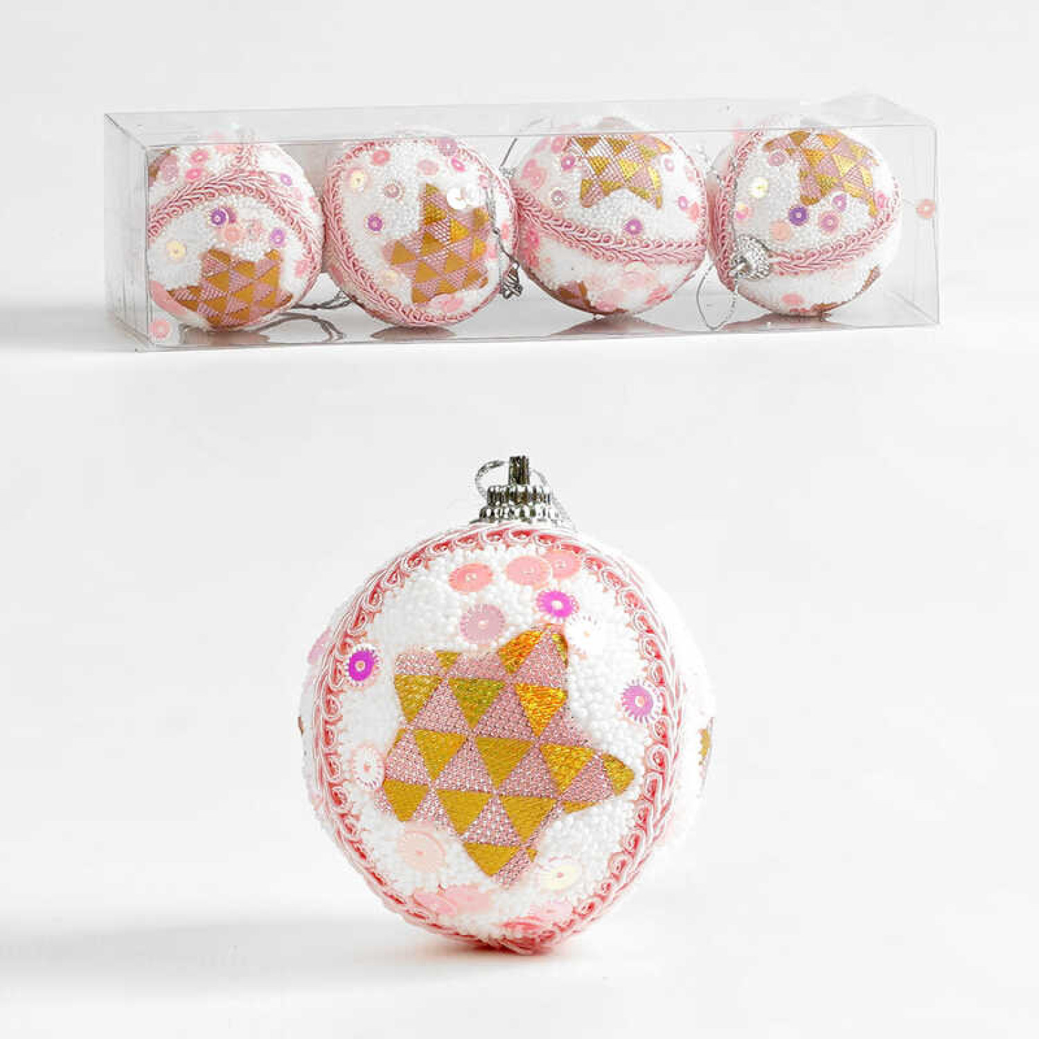 Новорічна прикраса на ялинку. Матеріал - пластик. Прикраса - паєтки. Діаметр - 6 см. Кількість в пакуванні - 4 шт.