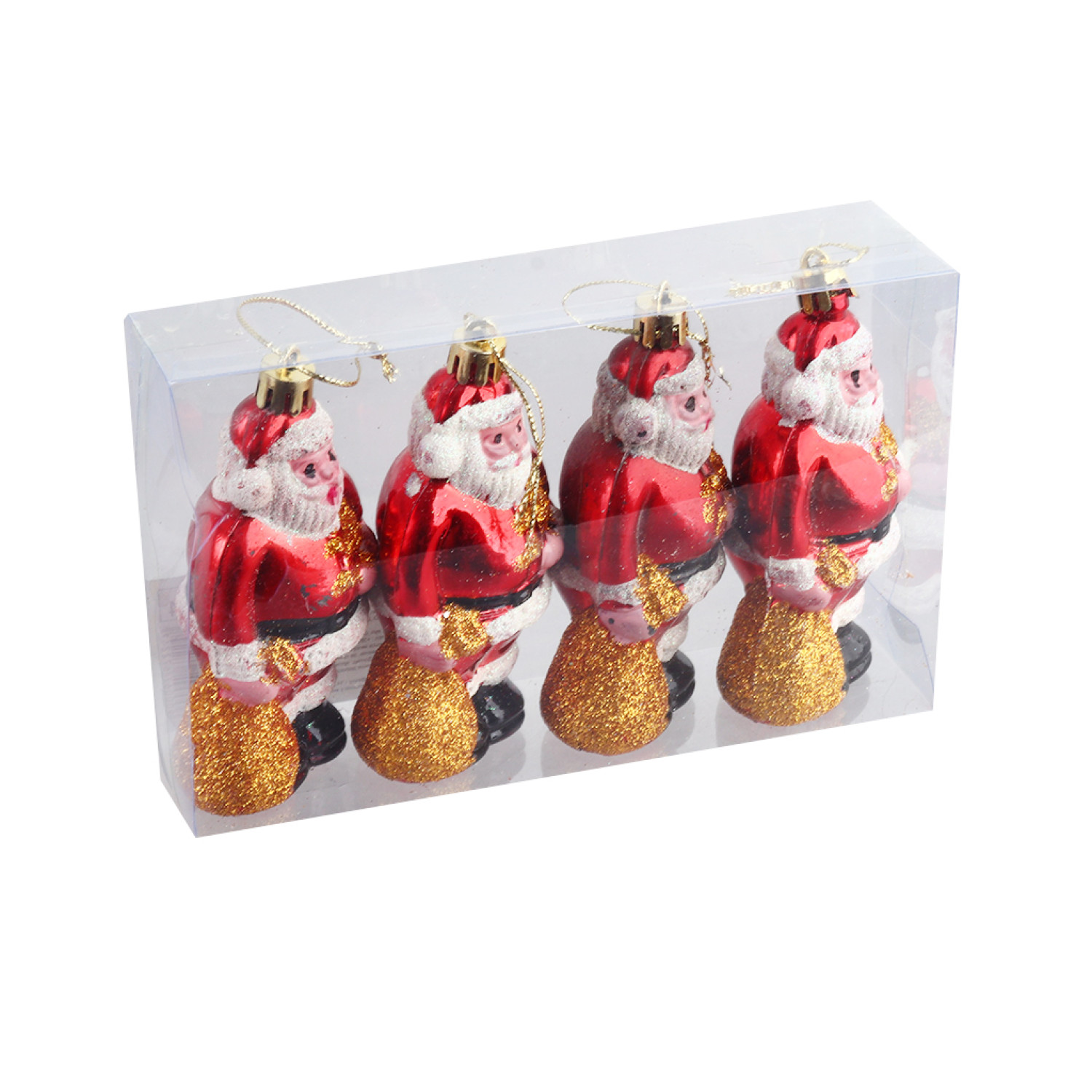 Вид прикраси - Санта. Висота - 11 см. Матеріал - пластик. Декор - глітер. Кількість в пакуванні - 3 шт.