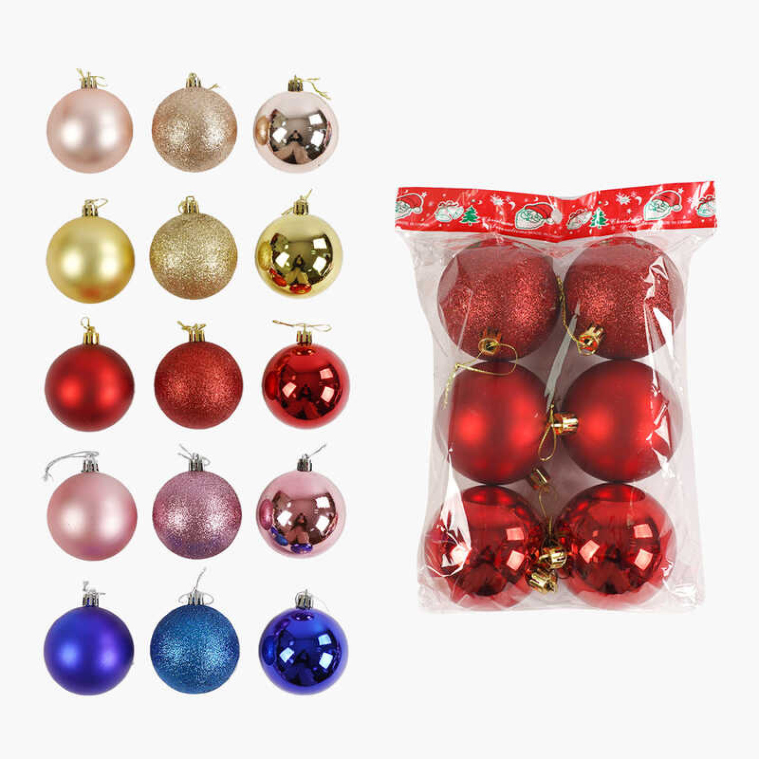 Новорічні прикраси 5 видів, кульки, 6 штук, D=7 см, у п/е, МІКС ВИДІВ /100/