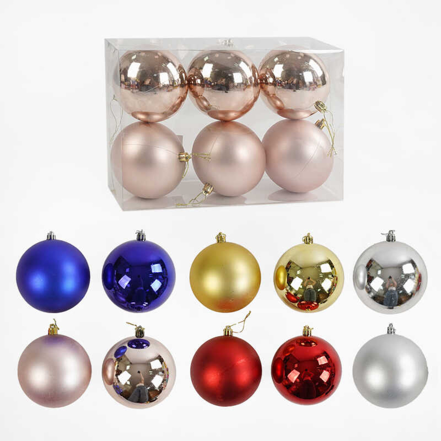 Новорічні прикраси 6 штук, кульки, D = 7,5 см, у слюді /64/