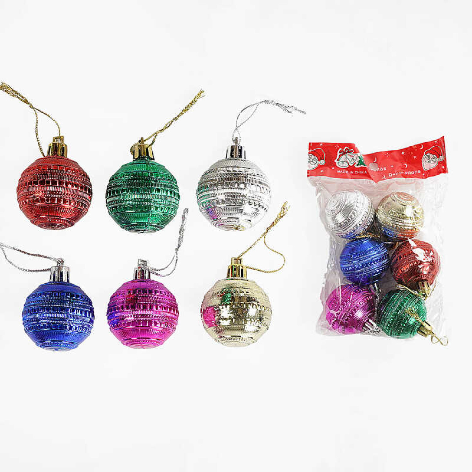Новорічні прикраси 6 штук, кульки, D= 4 см, у п/е /400/
