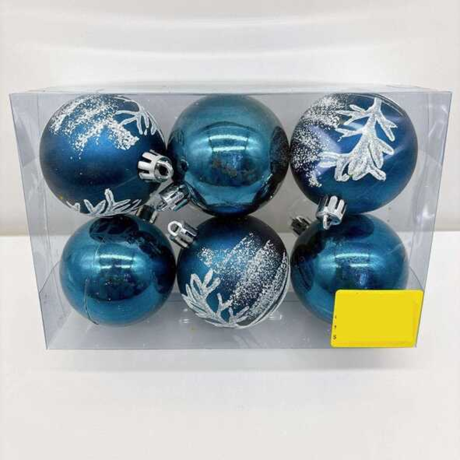 Новорічні прикраси 6 штук, кульки, D = 5,5 см, у слюді /120/