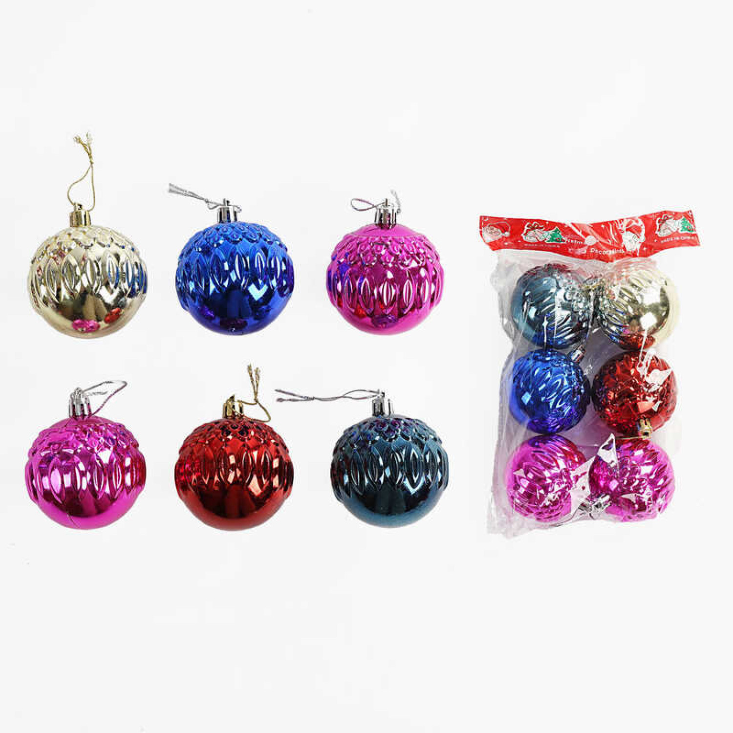 Новорічні прикраси 6 штук, кульки, D= 6 см, у п/е /120/