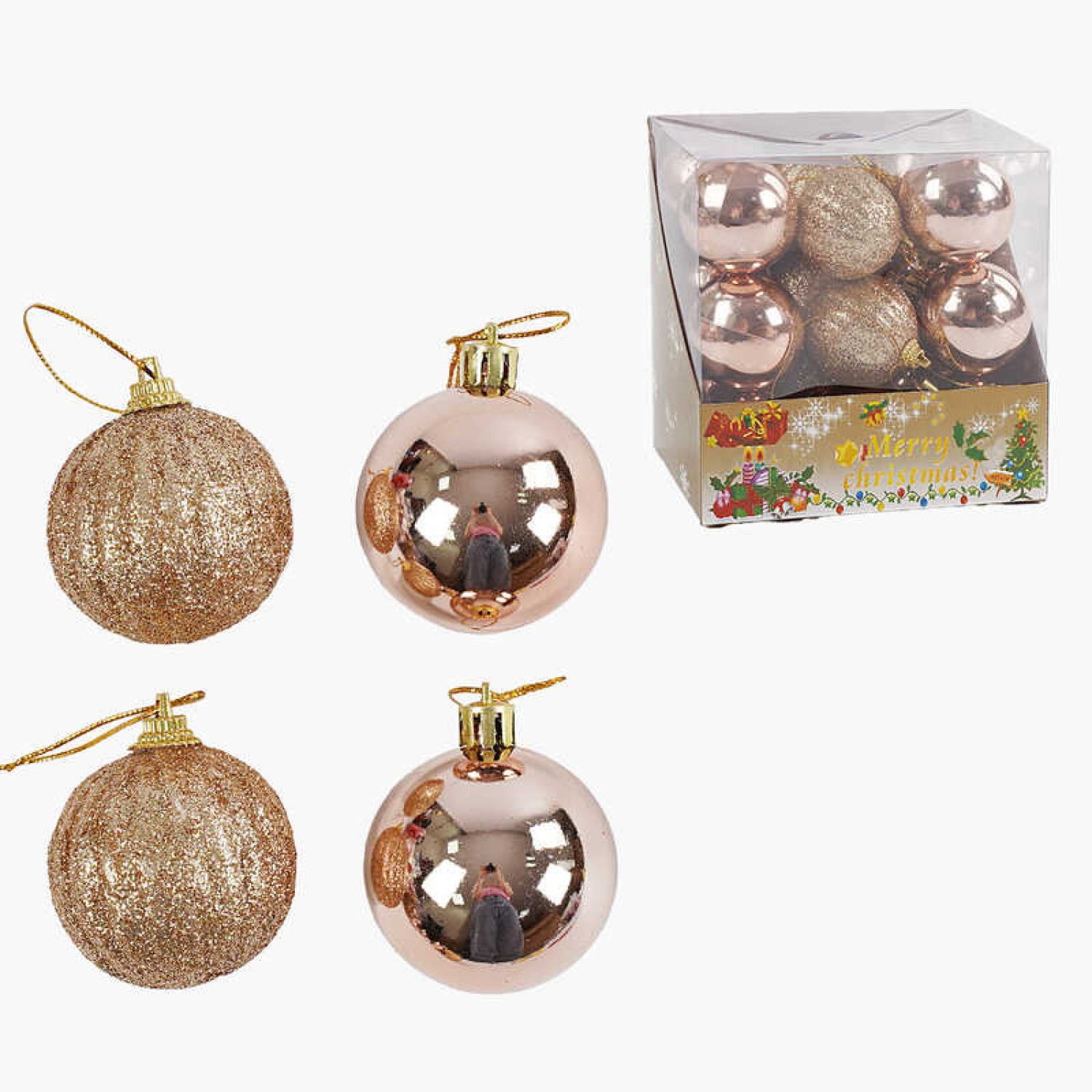Діаметр - 5 см. Матеріал - пластик. Декор - глітер. Кількість в пакуванні - 9 шт. Розмір упаковки: 24.5*5*19.5 см