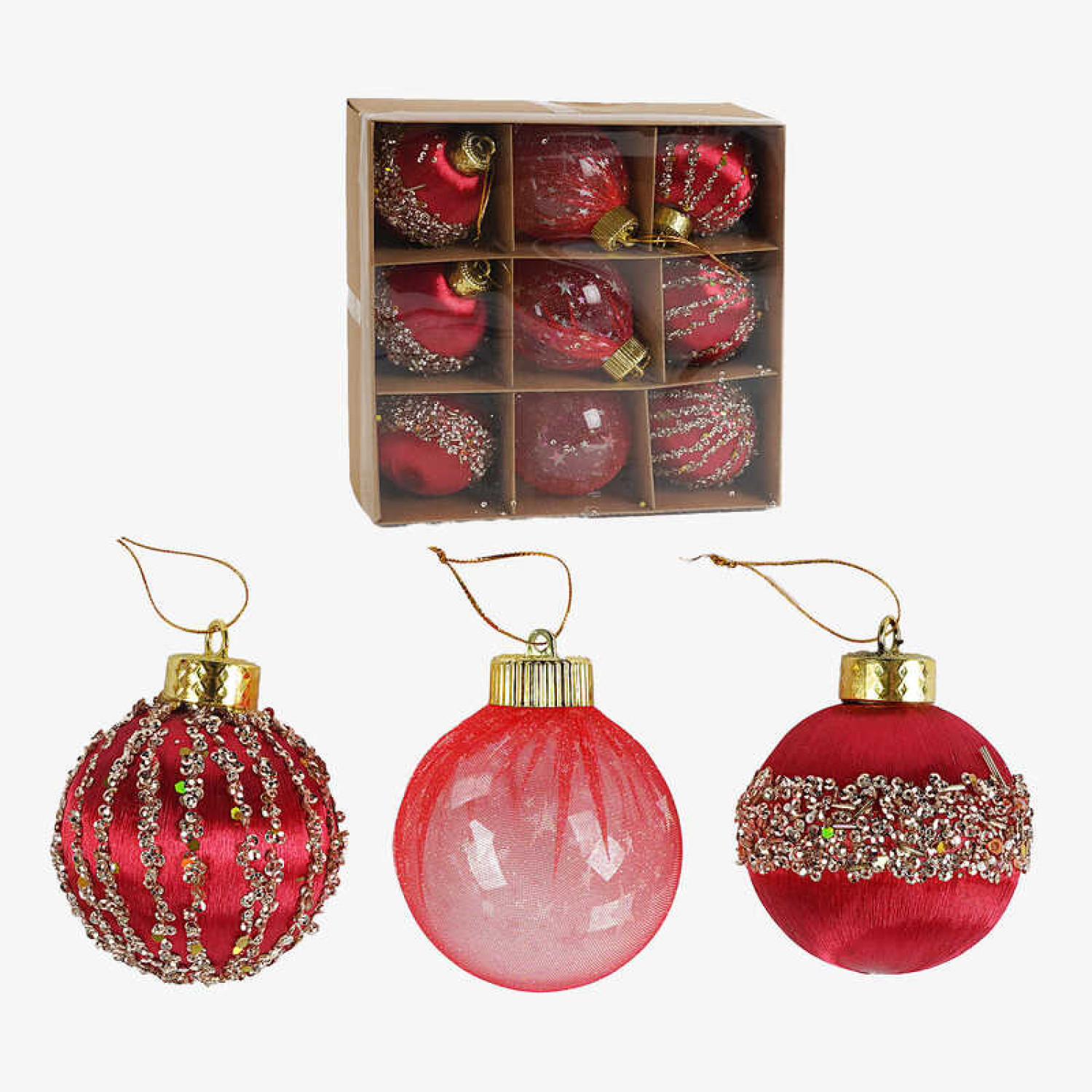 Діаметр - 8 см. Матеріал - пластик. Декор - глітер. Кількість в пакуванні - 9 шт. Розмір упаковки: 24*25*8 см