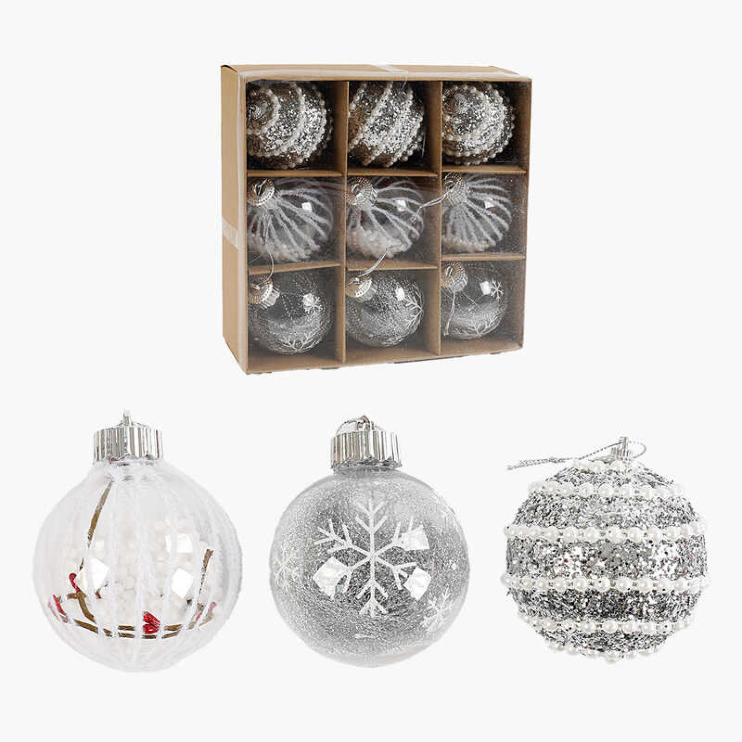 Діаметр - 8 см. Матеріал - пластик. Декор - глітер. Кількість в пакуванні - 9 шт. Розмір упаковки: 24*25*8 см