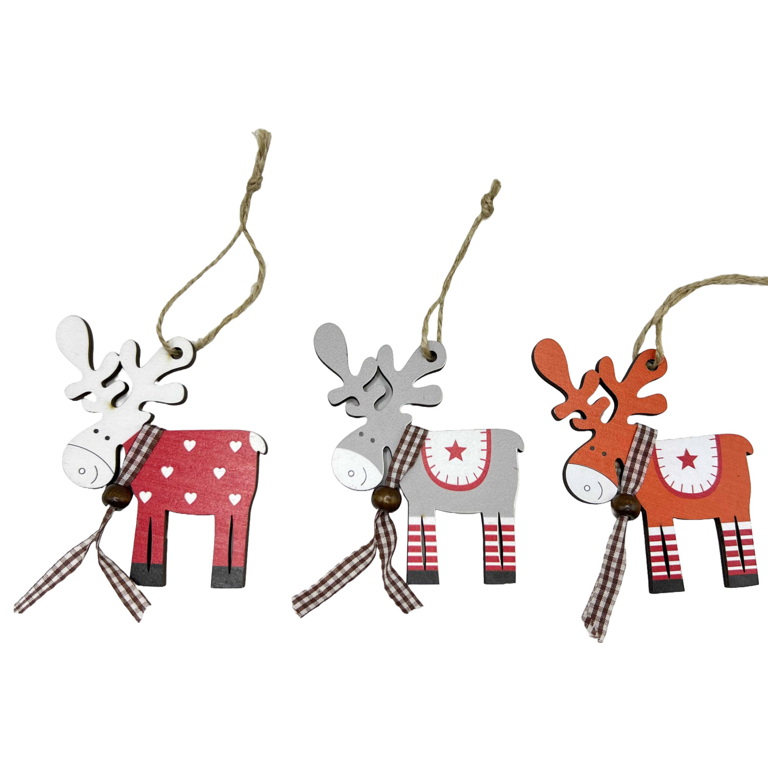 Підвіска новорічна дерев'яна "Олень" 9.5*8см 3в.(25*20)